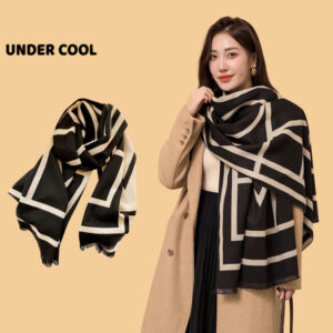 Khăn Choàng Dạ Nữ UNDERCOOL Phối Màu Đen Be Hoạ Tiết Trẻ Trung KC03