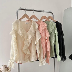 Áo babydool dáng dài UNDERCOOL bèo ngực chất voan tơ tay bồng điệu Áo kiểu tiểu thư xuyên thấu bèo nhún form rộng ADT20