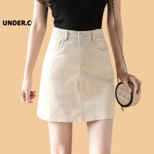 Chân Váy Chữ A Thô UNDERCOOL kaki nữ basic dáng ngắn lưng cao có quần trong CV11