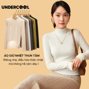 Áo giữ nhiệt nữ lót lông cổ cao UNDERCOOL form rộng basic chất thun cotton dày ấm nữ tay dài cổ lọ dáng ôm dài ADT28