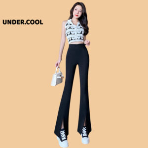 Quần tây ống rộng loe xẻ UNDERCOOL Nữ vitex phong cách hàn quốc Dáng Dài QD16