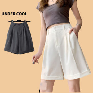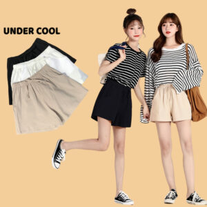 Quần đùi đũi dáng váy – Quần Short Nữ UNDERCOOL Cạp Cao Chất Đũi Ống Rộng Giả Dáng Váy QS05