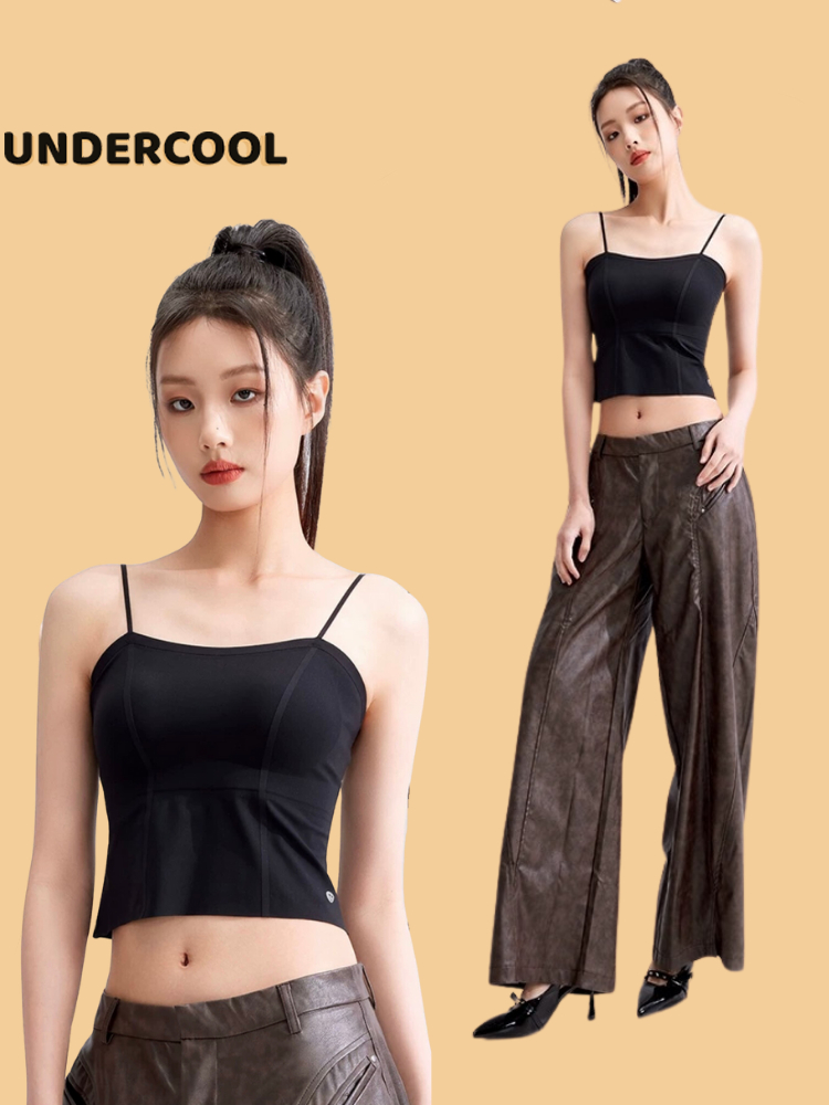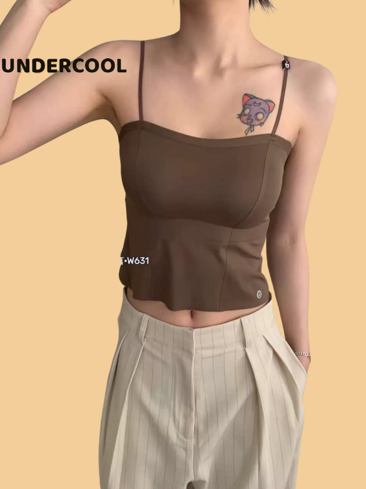 Áo 2 Dây Nữ Su UNDERCOOL Có Miếng Đệm Ngực Phối Viền Ôm Nâng 4 Màu Trơn Basic