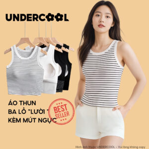 Áo Ba Lỗ Nữ Croptop UNDERCOOL Kèm Mút Đệm Ngực Cố Định, From Ôm, Co Giãn Tốt ,Thoáng Mát, Kiểu Dáng Trẻ Trung ABL39