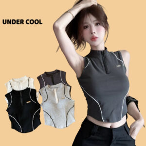 Áo Tanktop Thể Thao UNDERCOOL – Croptop Ôm Body, Cổ Cao Khóa Kéo, Thiết Kế Năng Động, Chất Co Giãn Thoáng Mát ABL36
