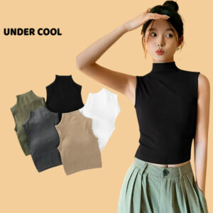 Áo croptop ba lỗ ngược UNDERCOOL cổ cao chất cotton dầy co dãn tốt, mặc tôn dáng, đen, trắng, xám, tím, trắng ABL08