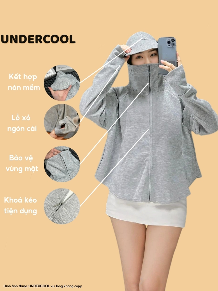 Áo Chống Nắng Cánh Dơi UNDERCOOL Áo Chống Nắng Chống Tia UV Vành Mũ To Trai chất Umì Nỉ Cao Cấp