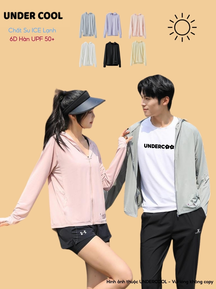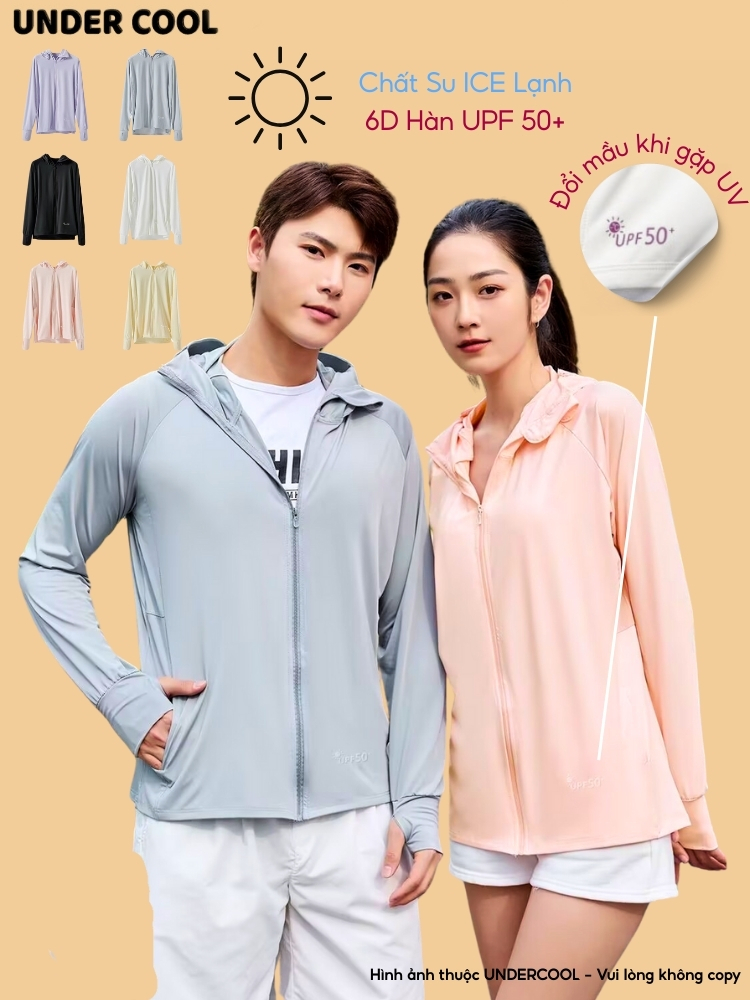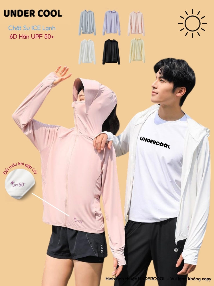 Áo chống nắng chất su ICE mát lạnh UNDERCOOL nam nữ 6D Hàn UPF 50+Áo chống nắng chống nóng bảng màu pastel ACN07