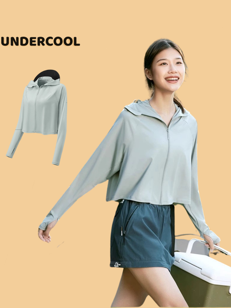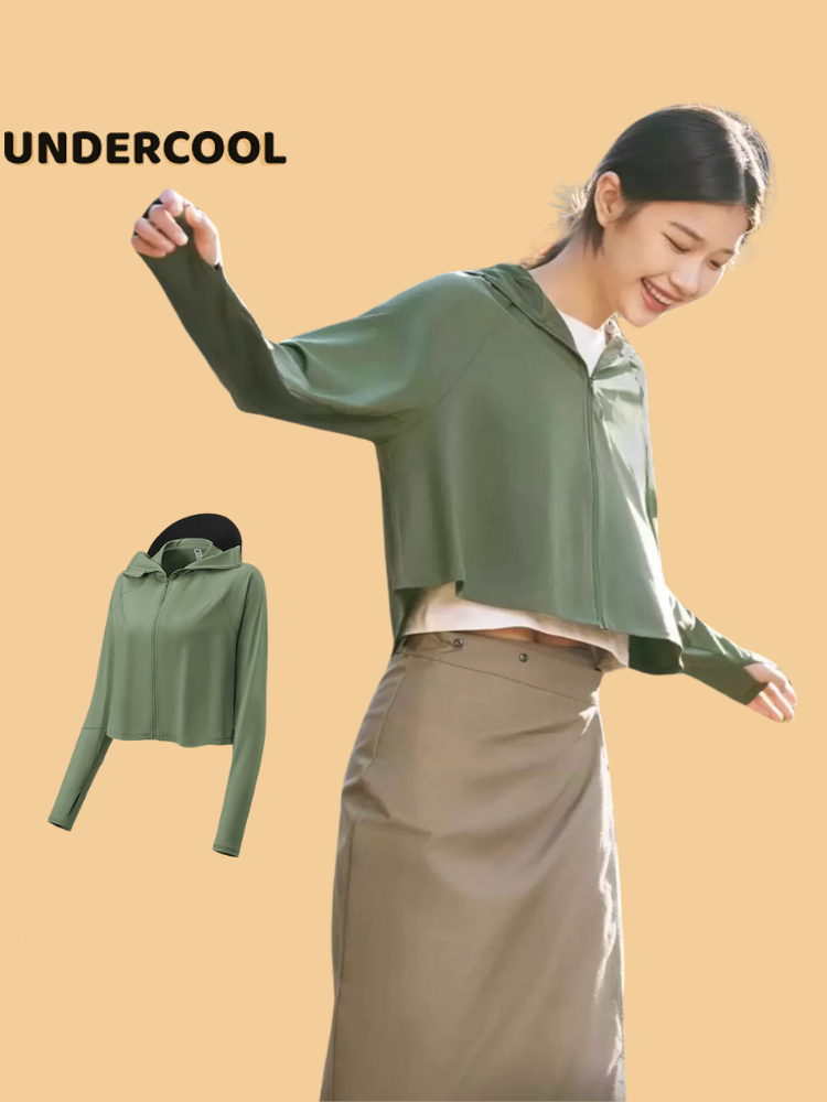 Áo Chống Nắng Dáng Choàng Lửng UNDERCOOL Mũ Vành Chống Chói Chất Thun Lạnh