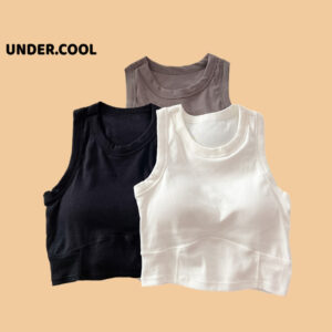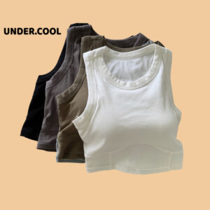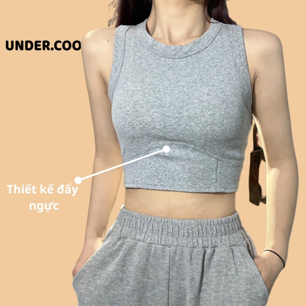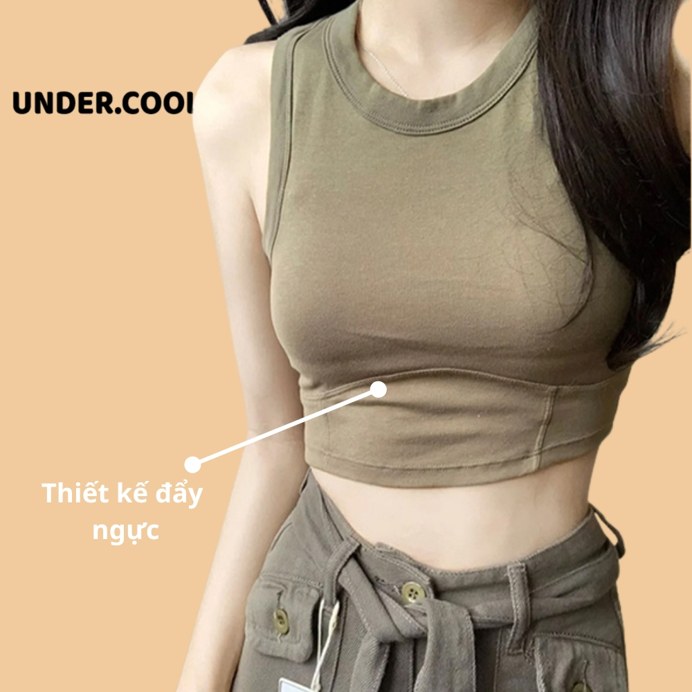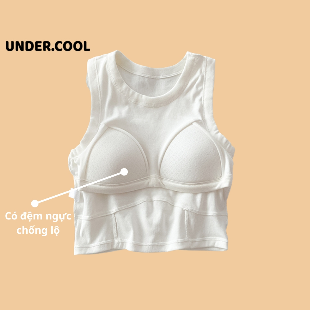 Áo croptop ba lỗ ngược UNDERCOOL cổ cao chất cotton dầy co dãn tốt, mặc tôn dáng, đen, trắng, xám, tím, trắng ABL08