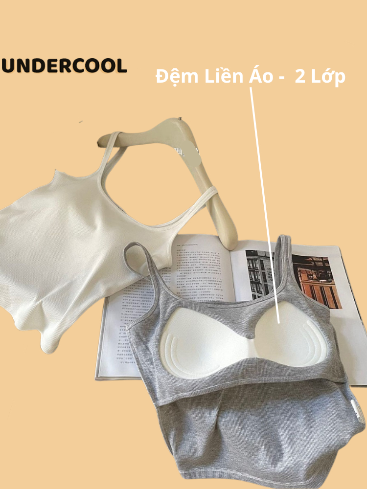 Áo Hai Dây Cotton UNDERCOOL Có Mút Ngực Tôn Dáng – Bra Ba lỗ nữ kèm mút mặc nhà AB22