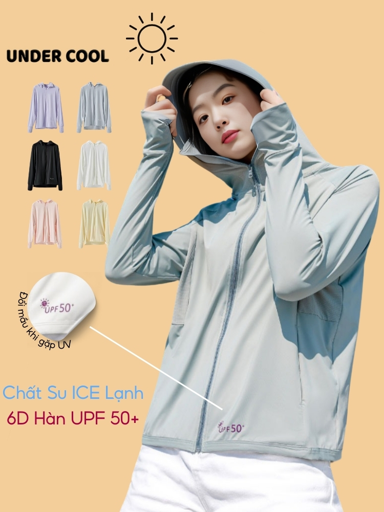 Áo Khoác Chống Nắng Nữ UNDERCOOL UPF50+ Đổi Màu Logo Chất Lụa Băng Mát Dáng Xuông Che Nắng Tối Ưu Có Túi Tiện Lợi