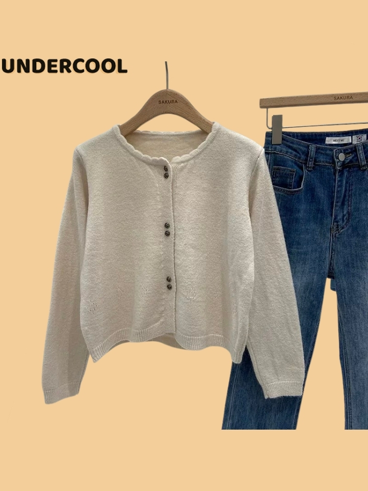 Áo khoác len UNDERCOOL Cardigan chất liệu len dày lông thỏ phối cúc đôi sang chảnh nữ tính cho các nàng AK28