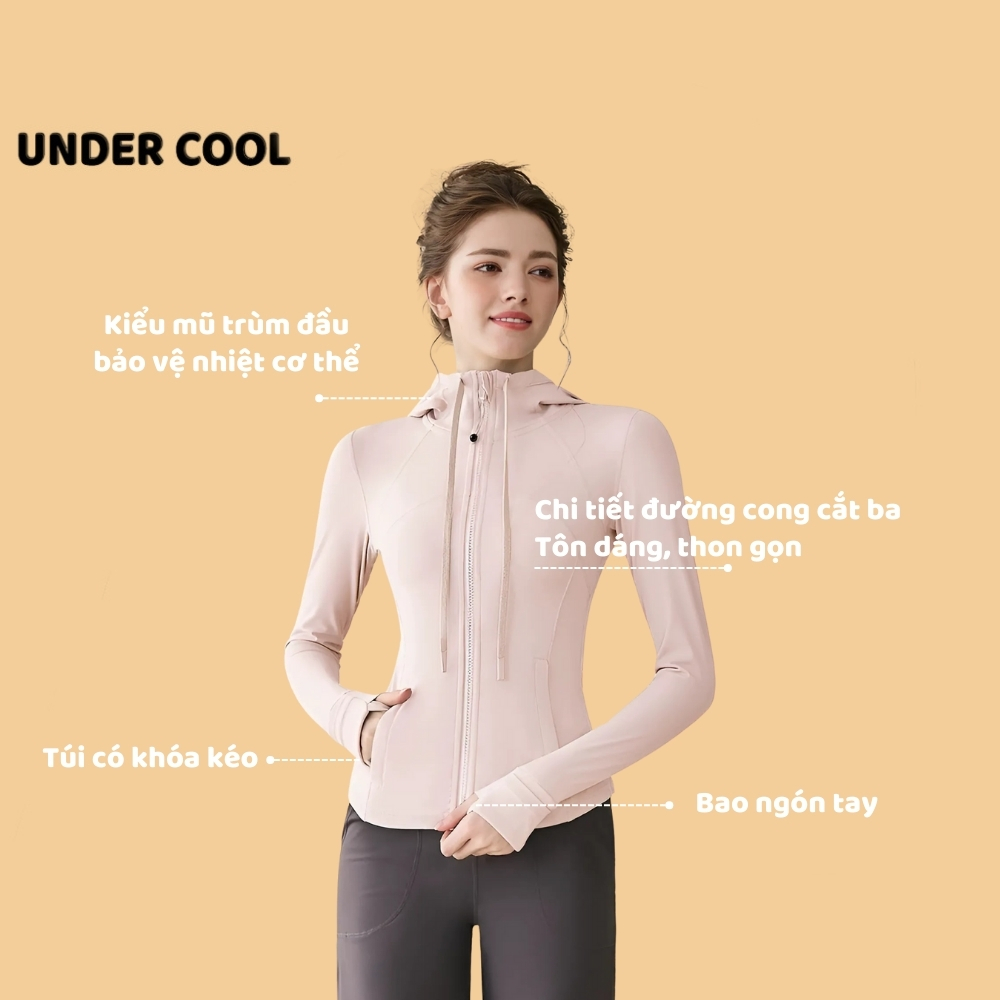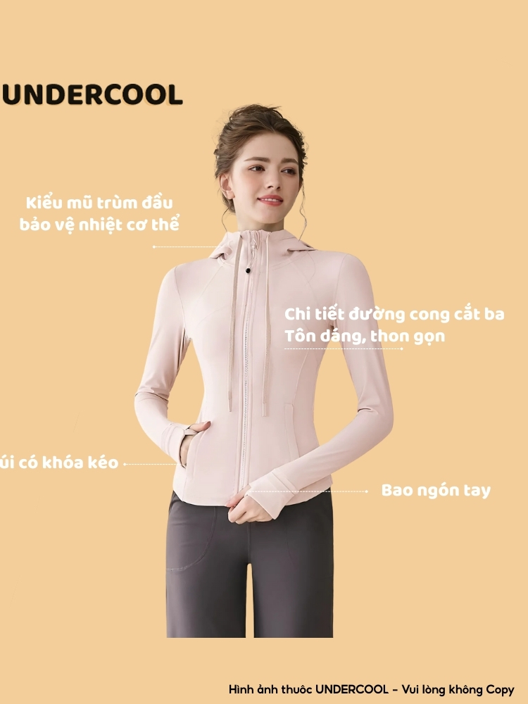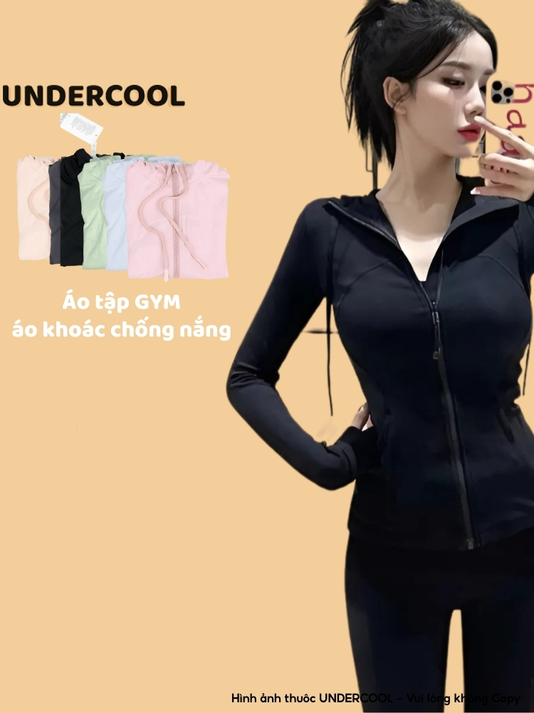 Áo Khoác Tập Gym UNDERCOOL Chống Nắng UPF 50+ Chất Co Giãn Thoáng Khí Chiết Eo Ôm Gọn Body Bảo Vệ Da Khi Vận Động ACN08