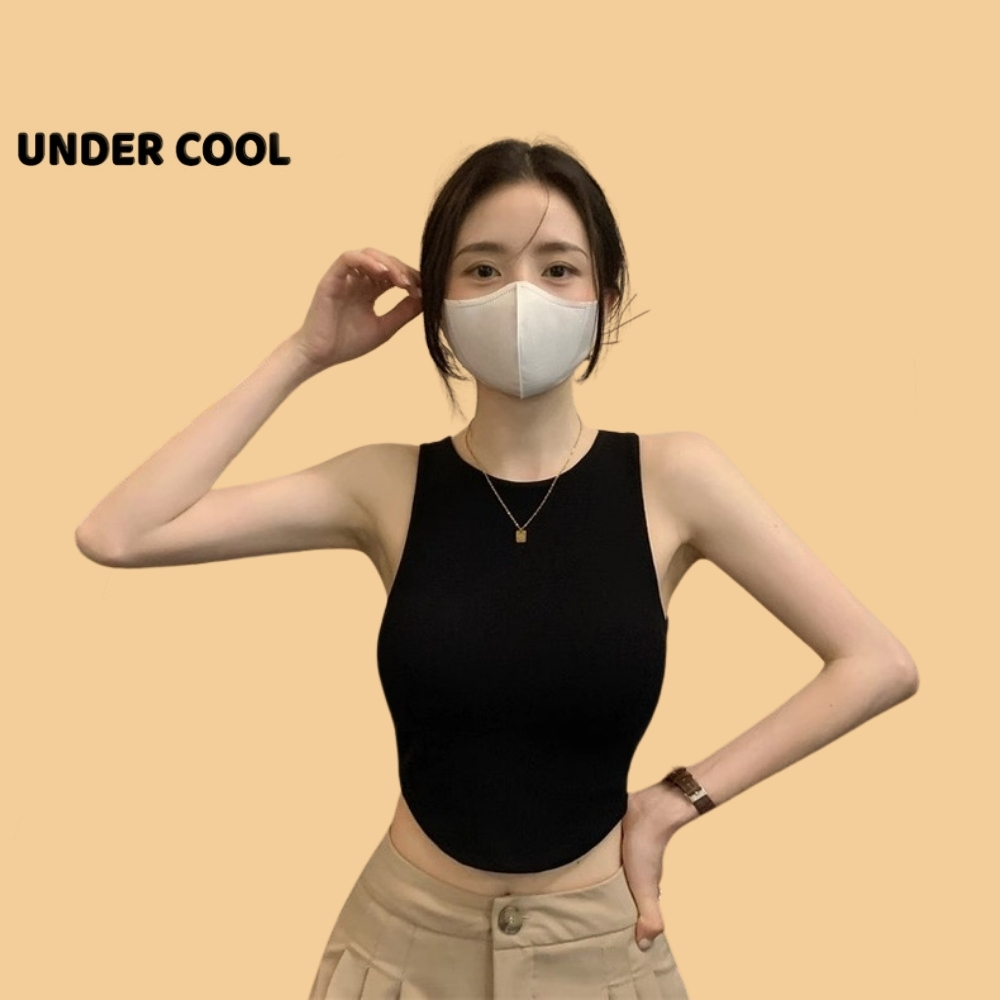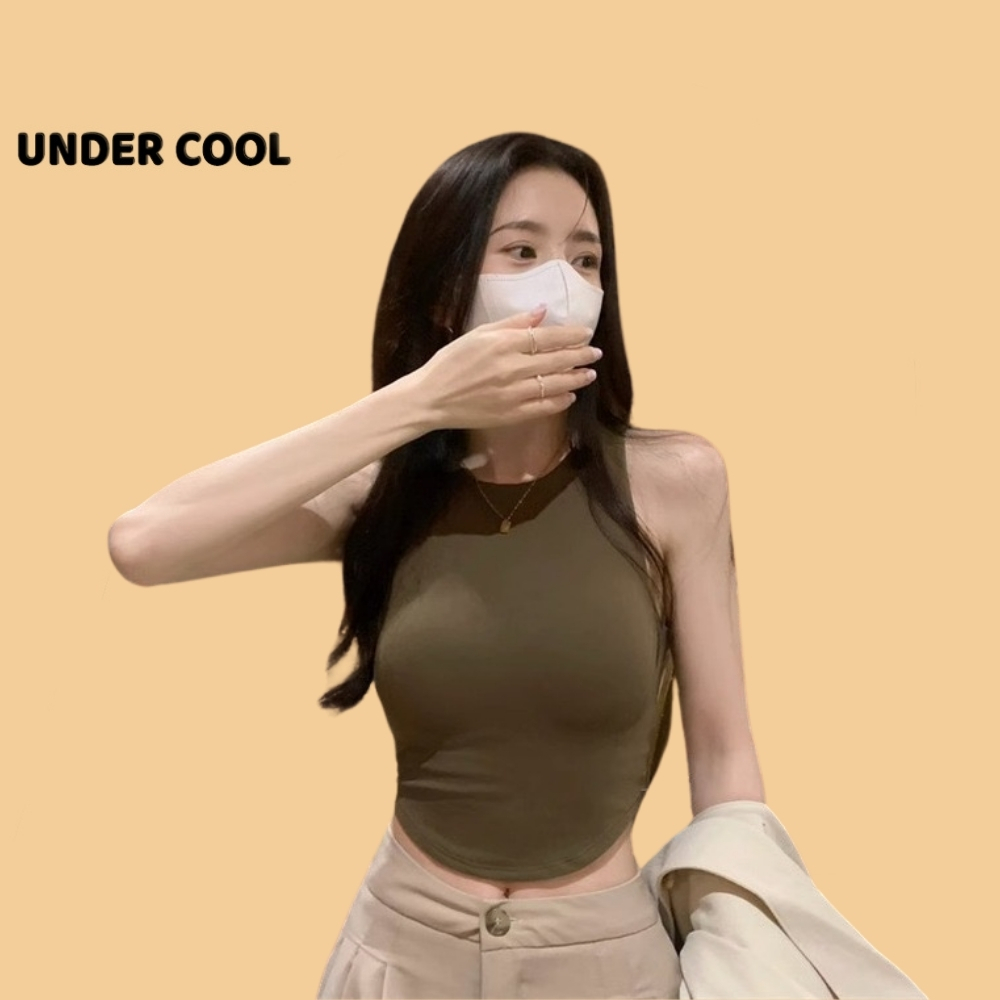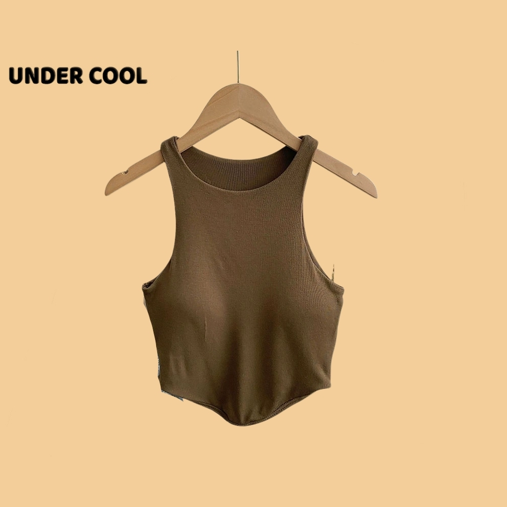 Áo Ống Ngắn Sát Nách Trơn UNDERCOOL dáng crotop Có Đệm Ngực Vạt bầu màu đen trắng be rêu nâu