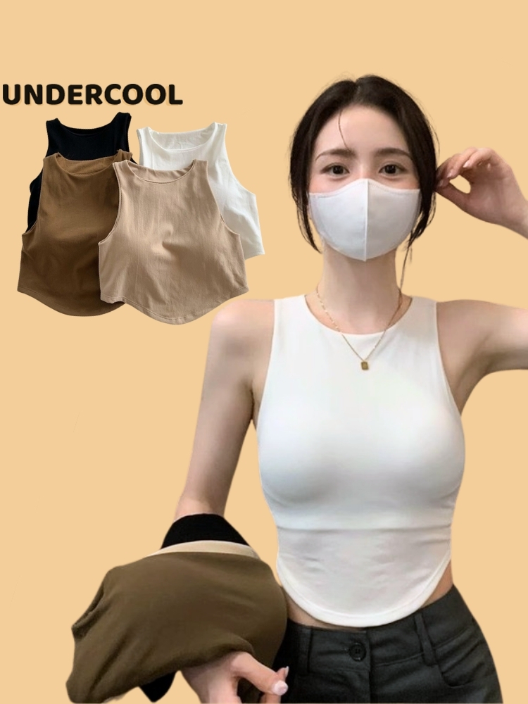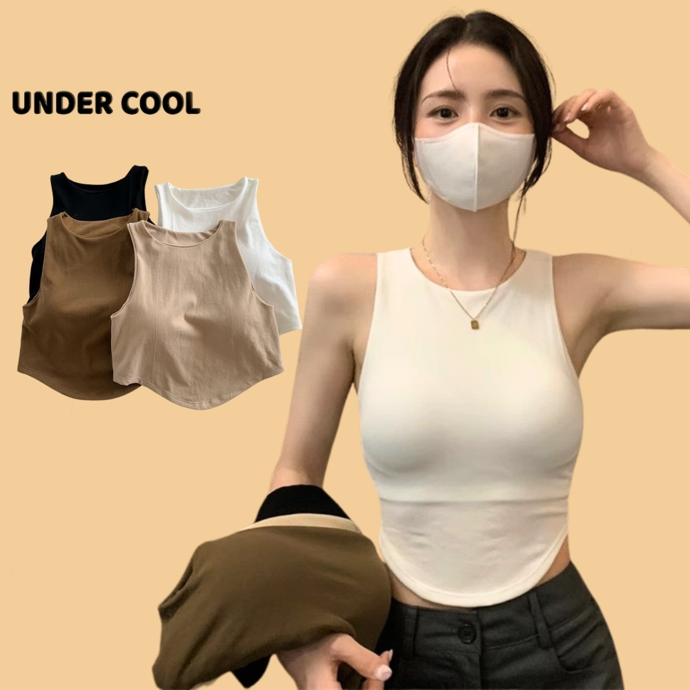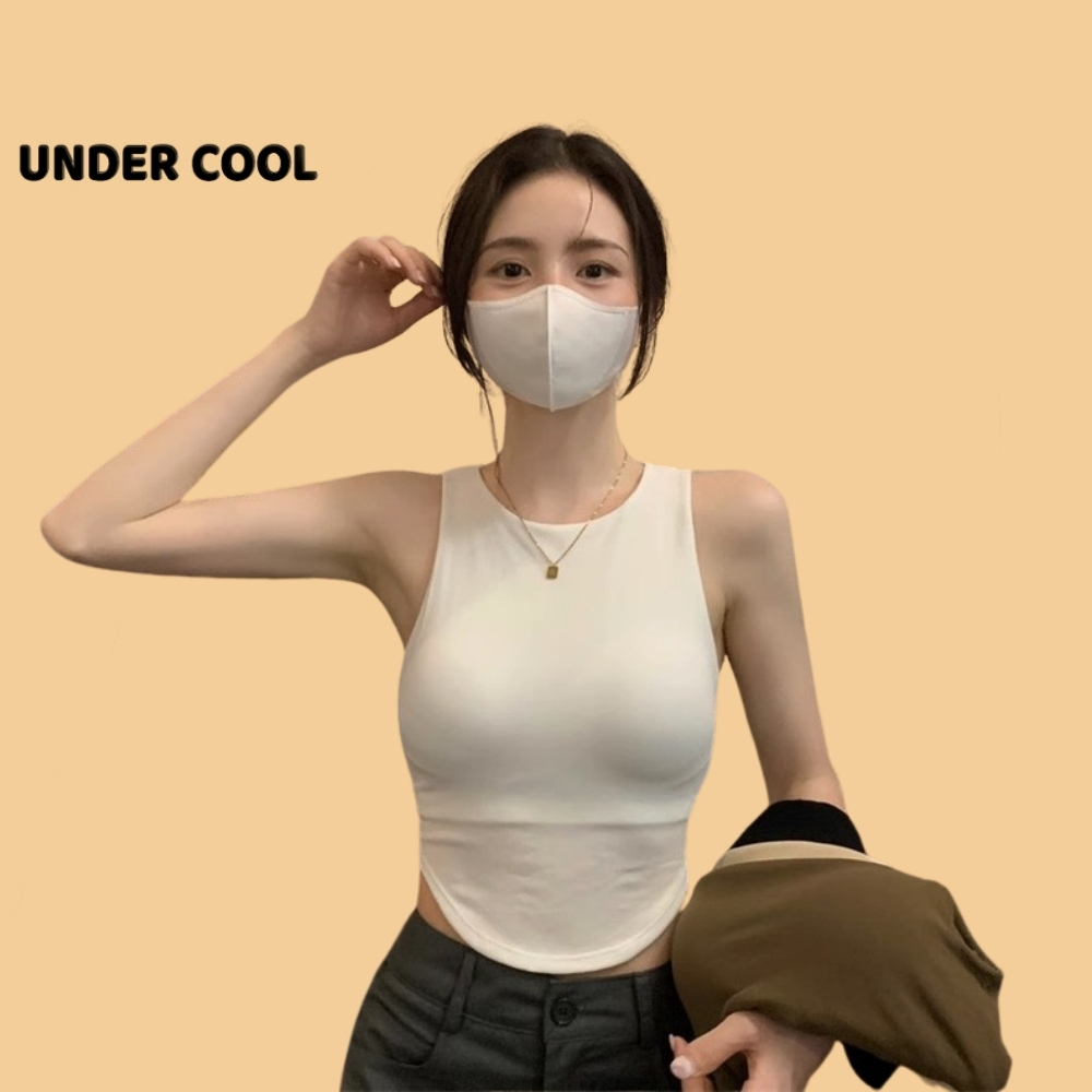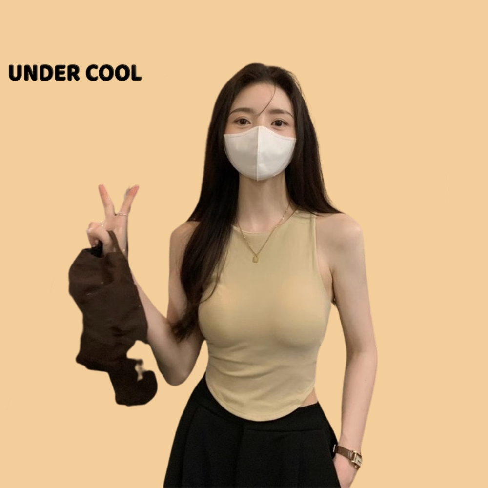 Áo Ống Ngắn Sát Nách Trơn UNDERCOOL dáng crotop Có Đệm Ngực Vạt bầu màu đen trắng be rêu nâu