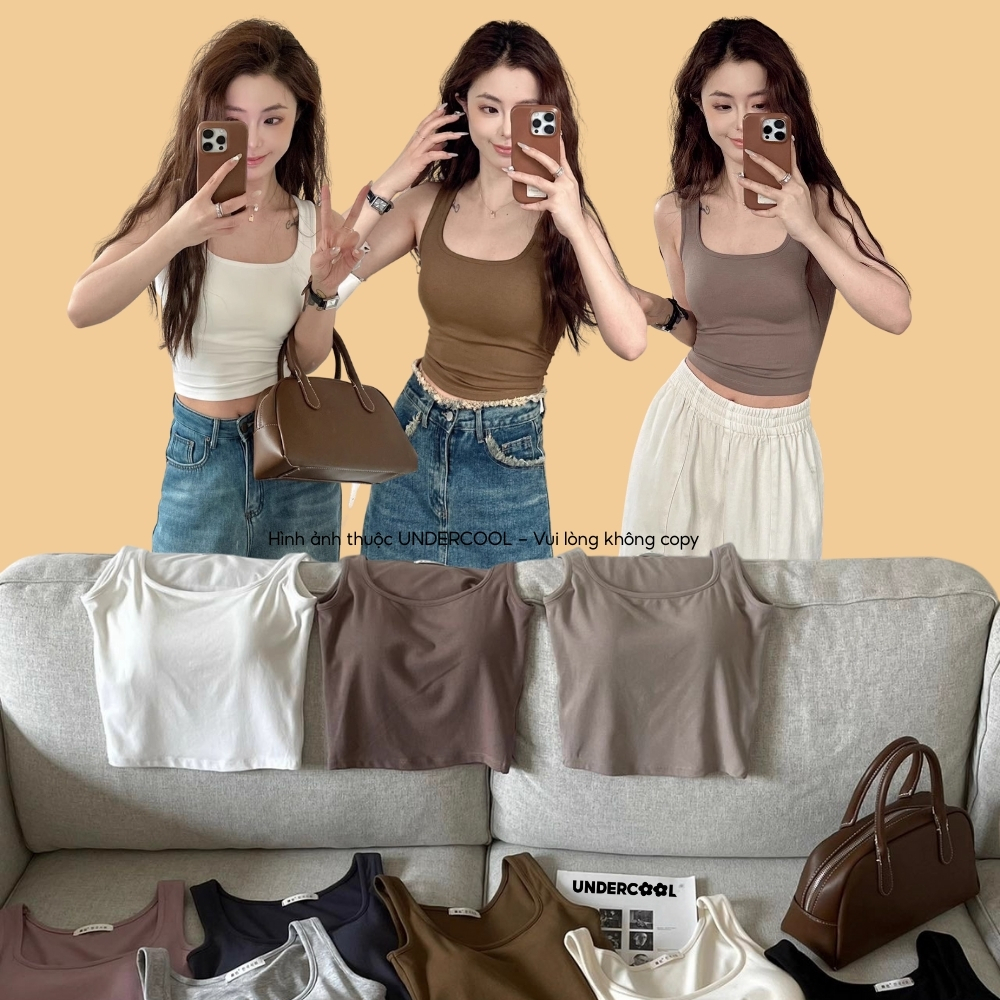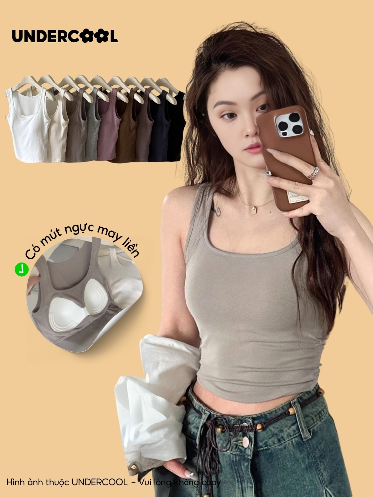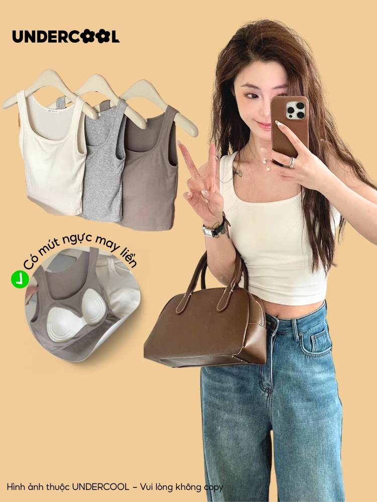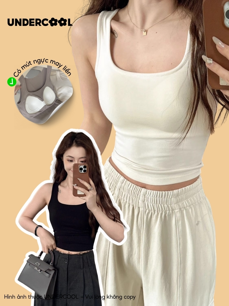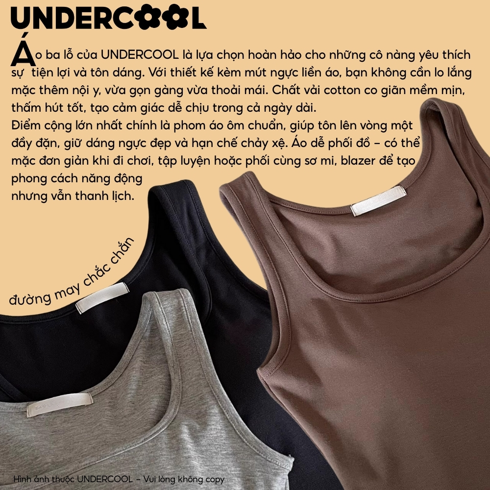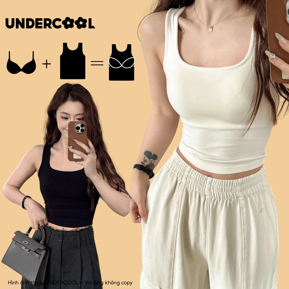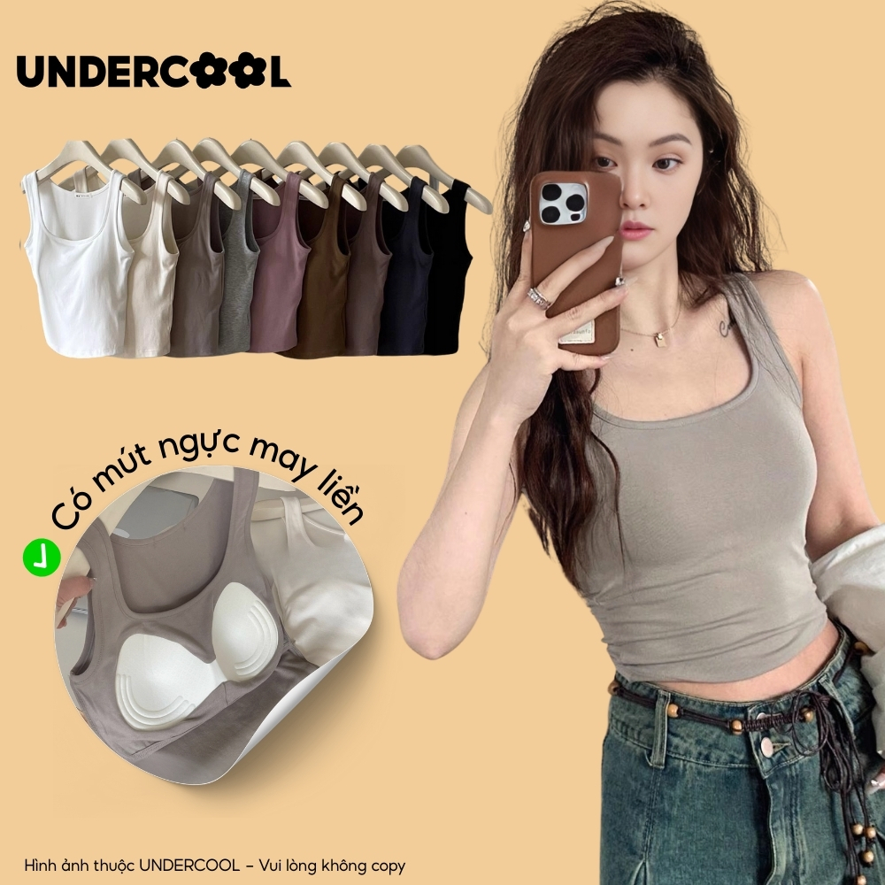 Áo Thun Ba Lỗ Nữ Kèm Mút Ngực UNDERCOOL Tank Top Thời Trang, Tôn Dáng, Mềm Mát, Phù Hợp Tập Gym & Mặc Nhà ABL46