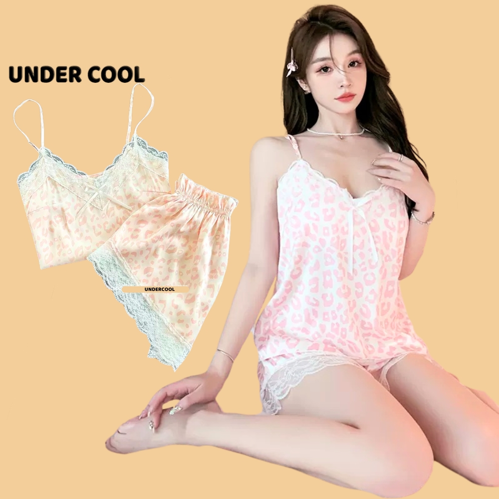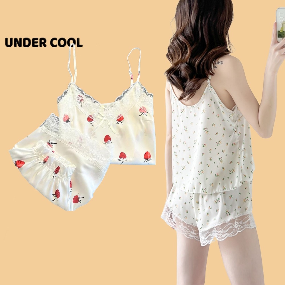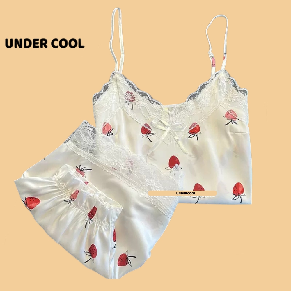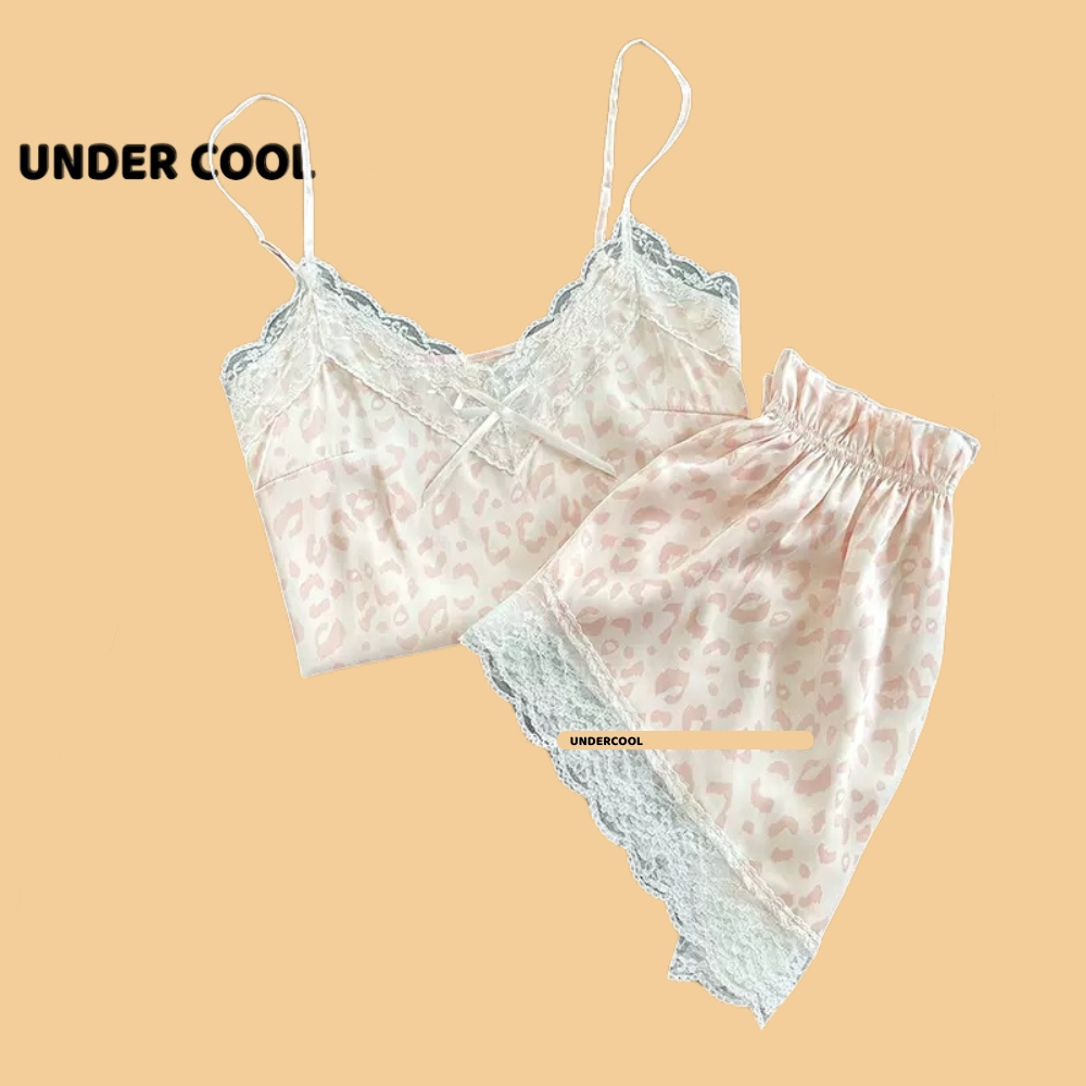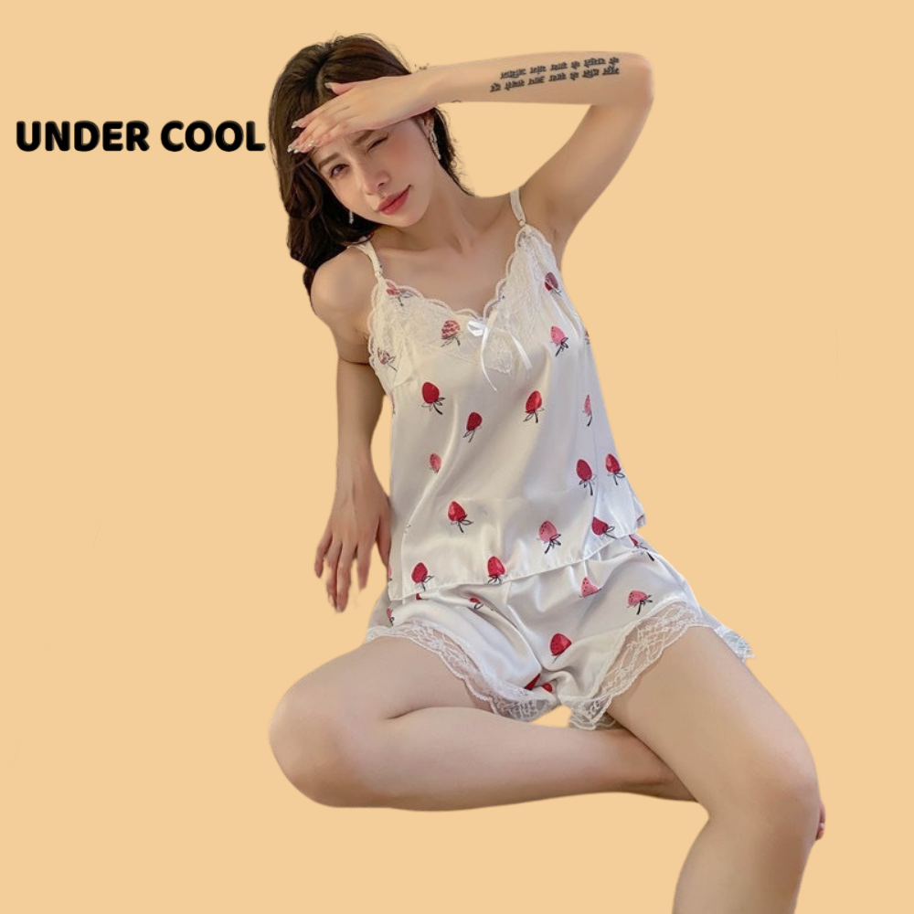 Bộ Ngủ Lụa 2 Dây UNDERCOOL Chất Mát Viền Ren Nhiều Màu Hoạ Tiết – Pijama quần cộc 2 dây