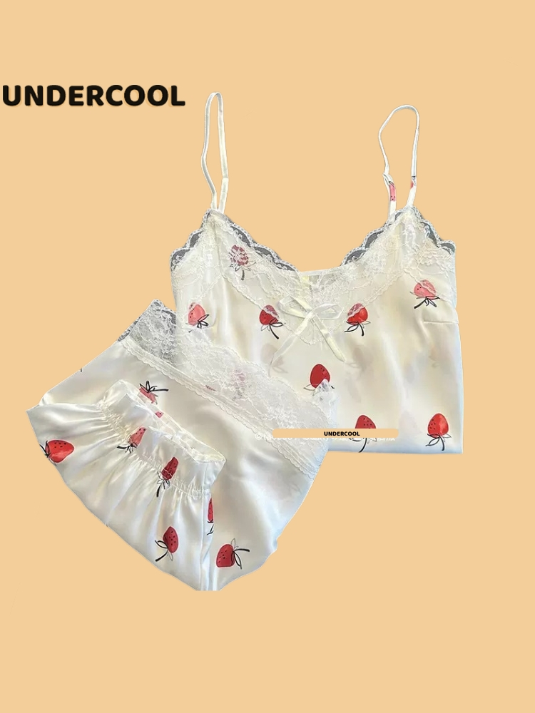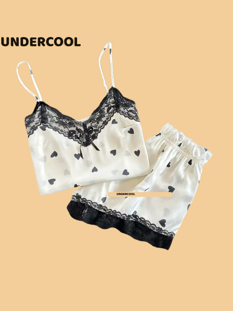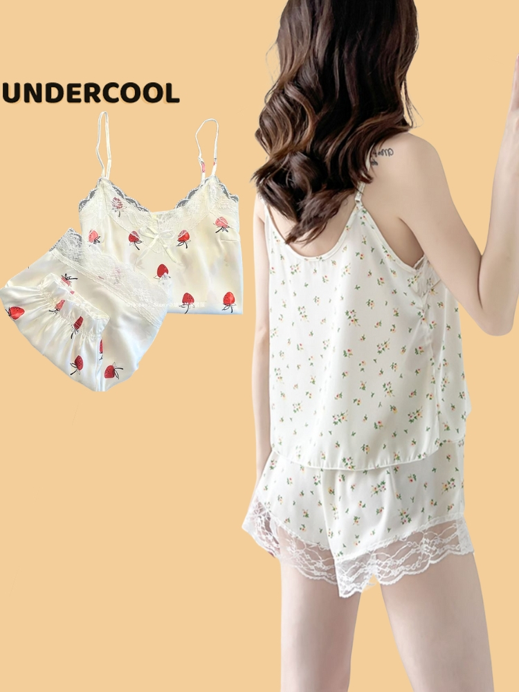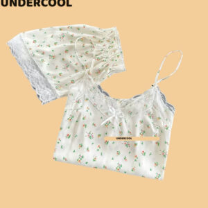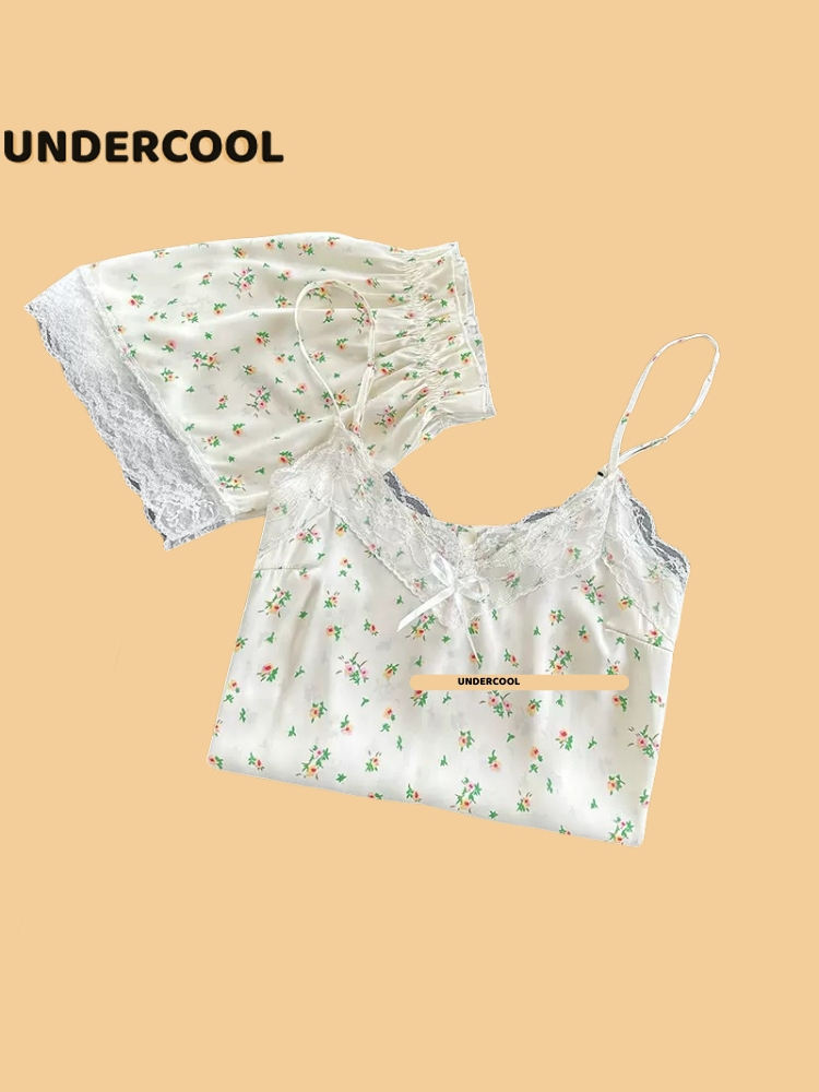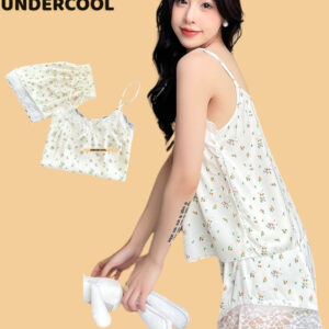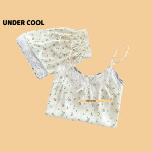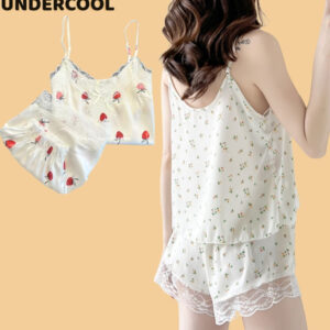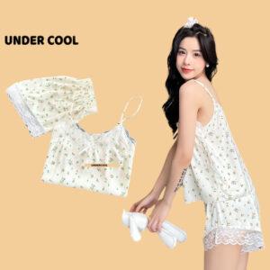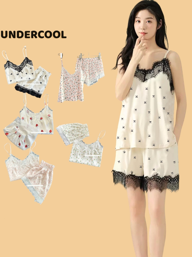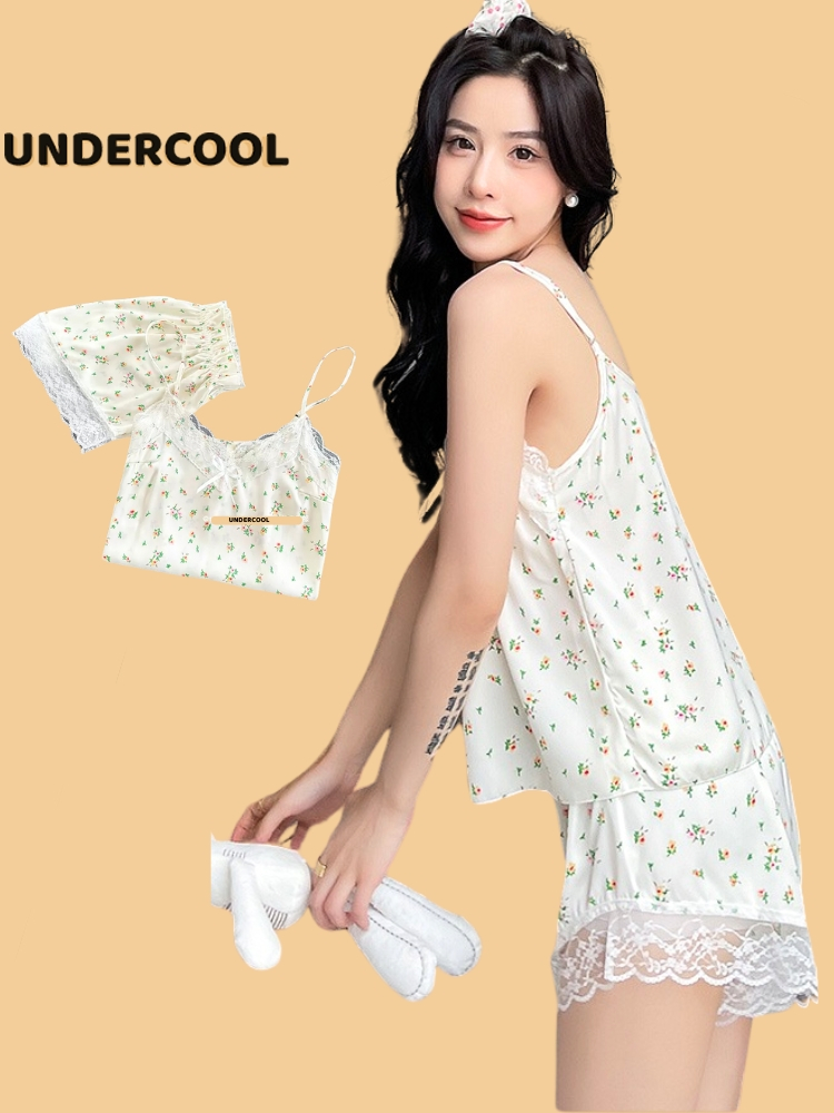 Bộ Ngủ Lụa 2 Dây UNDERCOOL Chất Mát Viền Ren Nhiều Màu Hoạ Tiết – Pijama quần cộc 2 dây