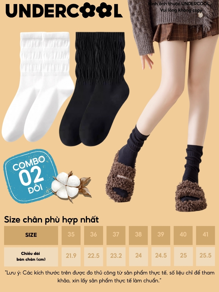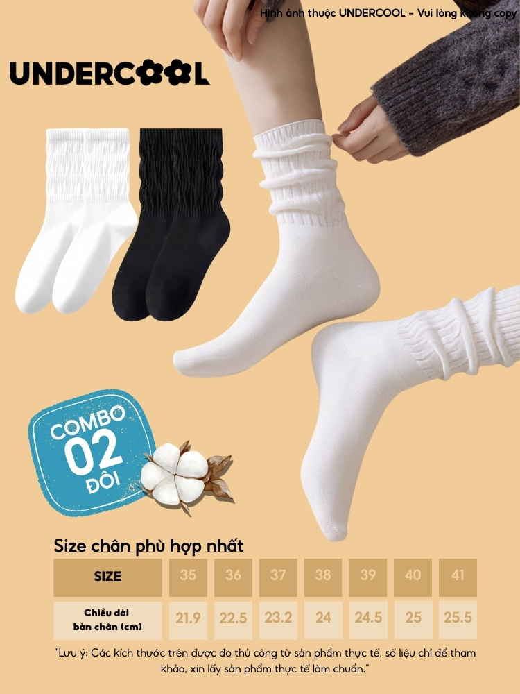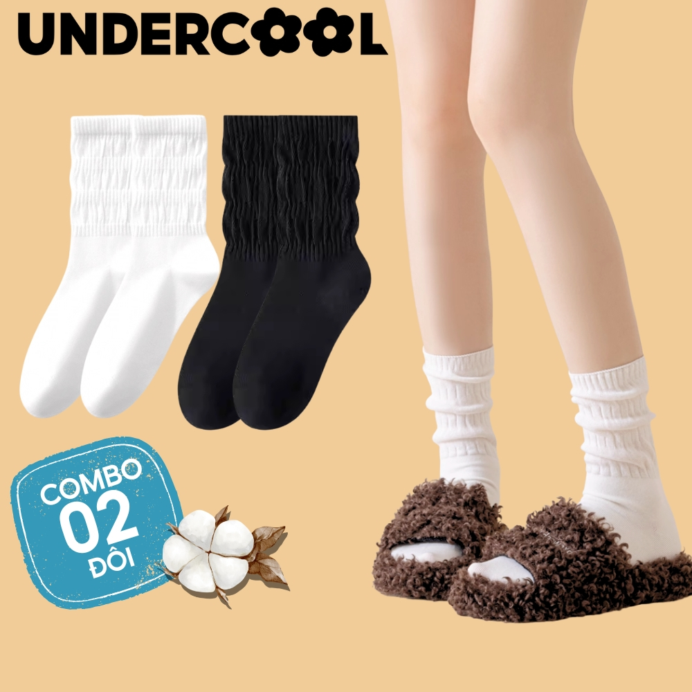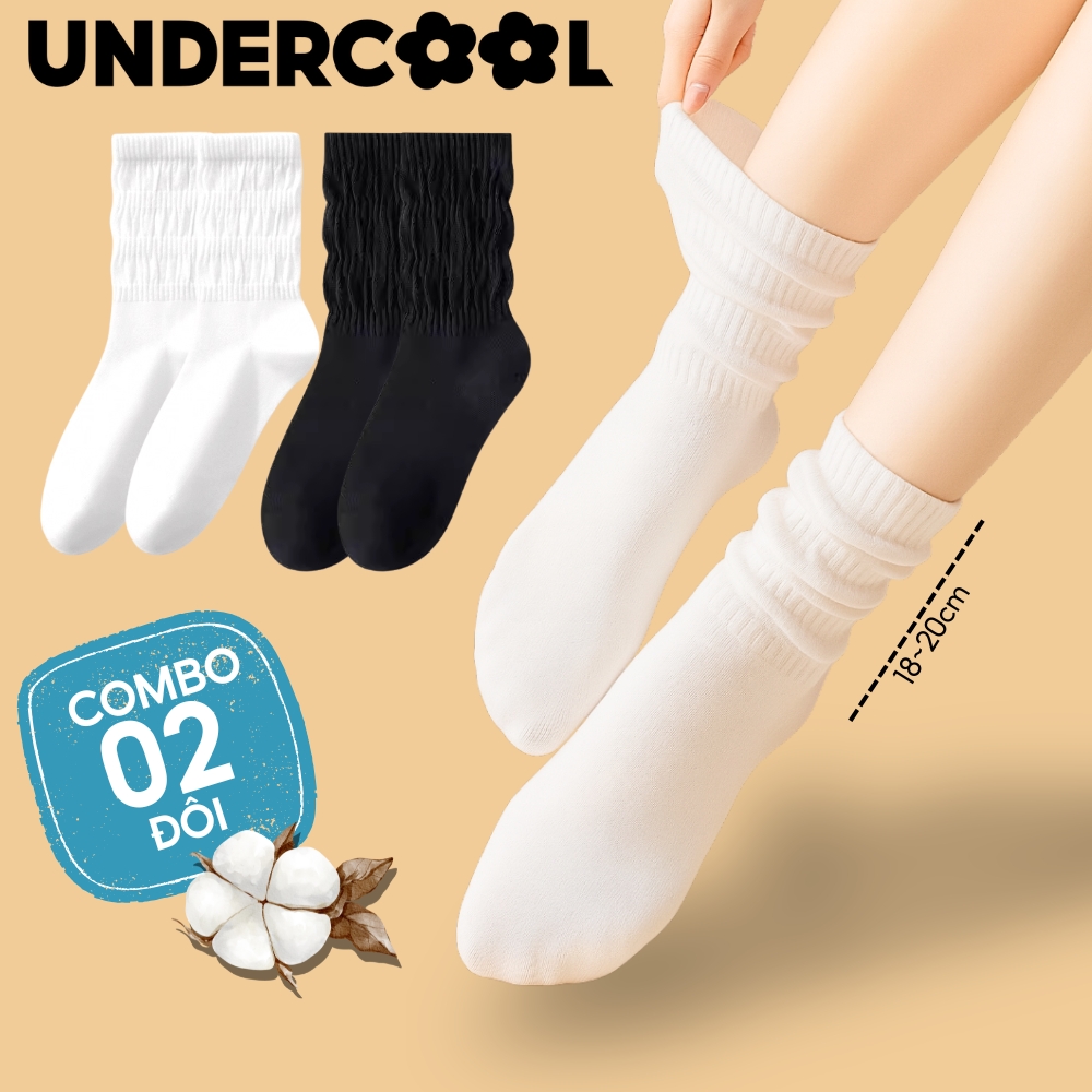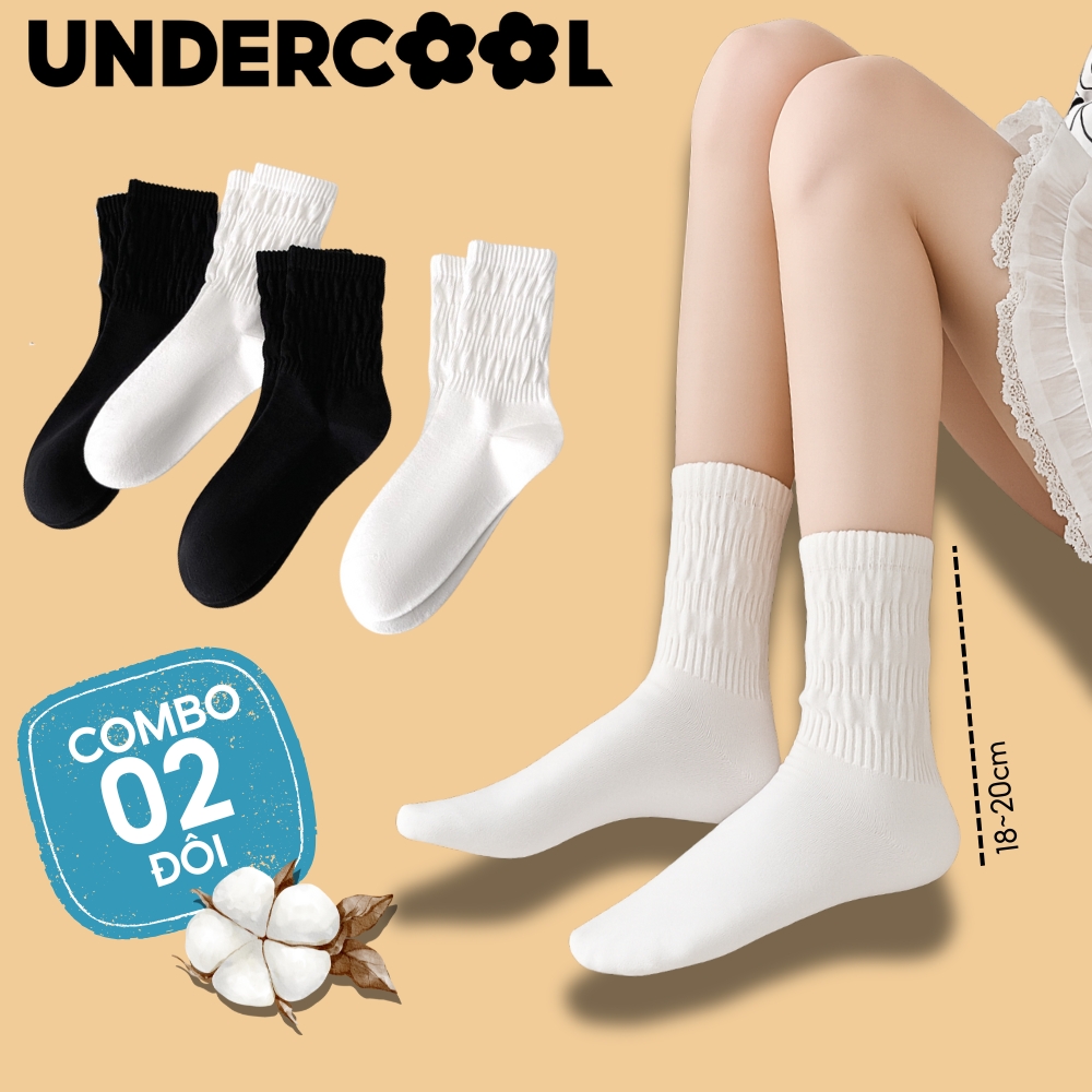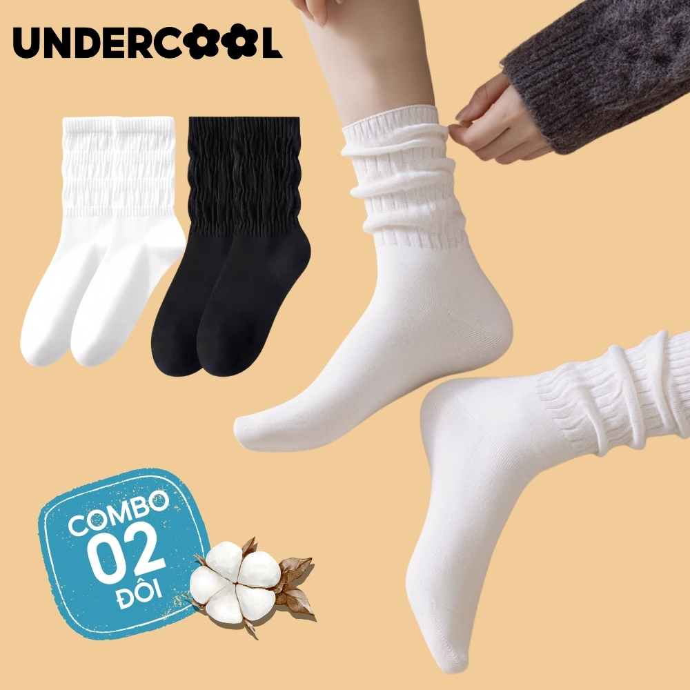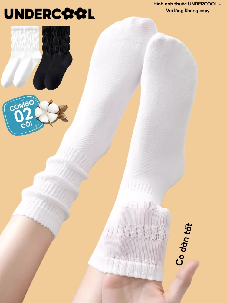 COMBO 2 đôi Tất/ vớ nữ Dệt Kim Gân To Mỏng Cổ Nhún UNDERCOOL phong cách lolita mỏng nhẹ cá tính, co giãn 4 chiều CB-TC97