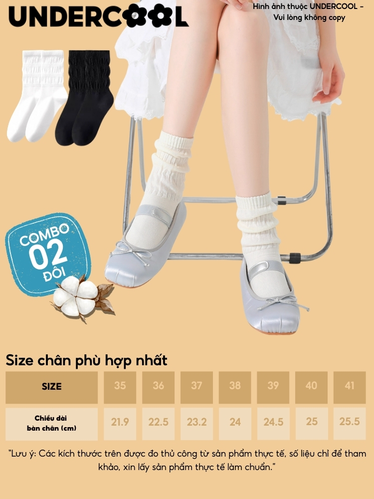 🧦 Vớ/Tất Babydoll Mỏng UNDERSCOOL – Combo 2 Đôi