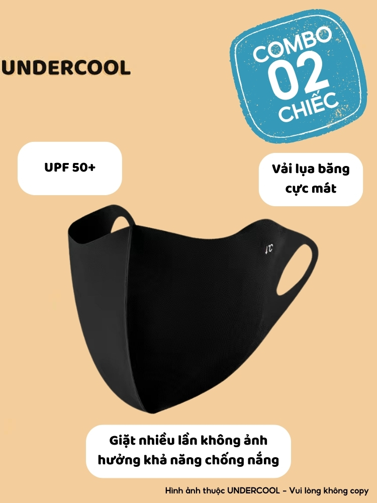 Combo 2 Khẩu Trang Vải UNDERCOOL – Chống Nắng, Lụa Băng Mát Lạnh, Co Giãn Thoải Mái, Chống Tia Cực Tím, Bụi Mịn KT14