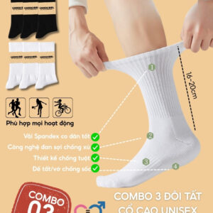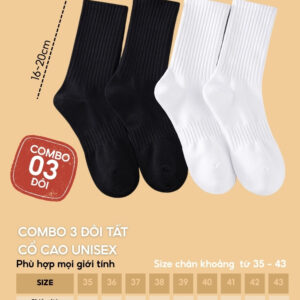 Form tất ôm vừa chân, không xù, không bai dão, mang lâu vẫn giữ dáng và độ bền cao. Phù hợp cho cả nam và nữ với size chân từ 35 đến 43. Dễ dàng phối cùng sneaker, giày thể thao, boot cao cổ… lý tưởng cho học sinh, sinh viên, dân văn phòng, người tập thể thao.