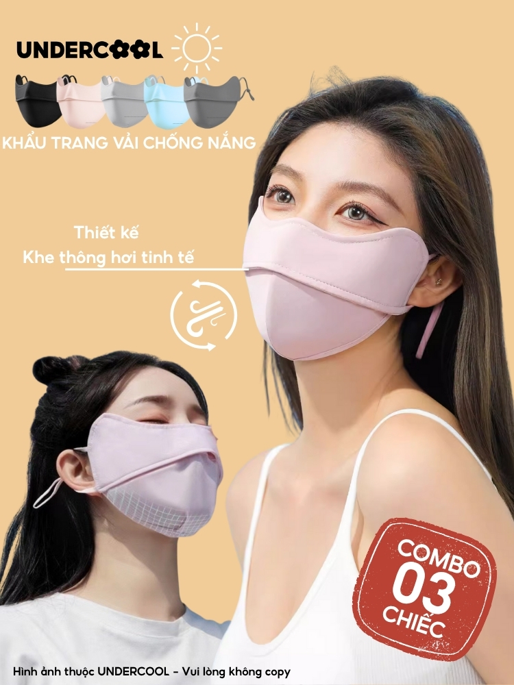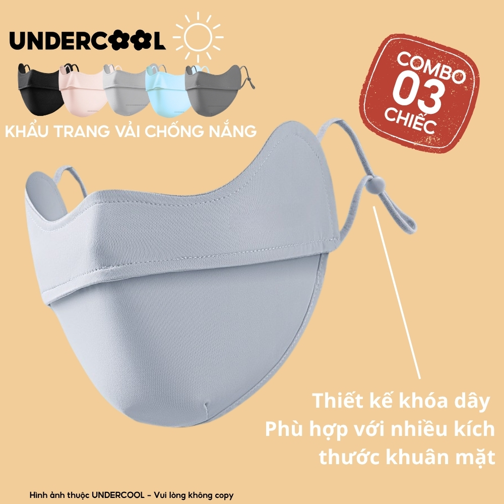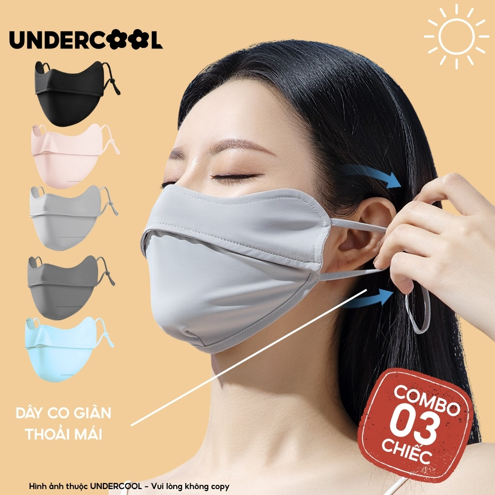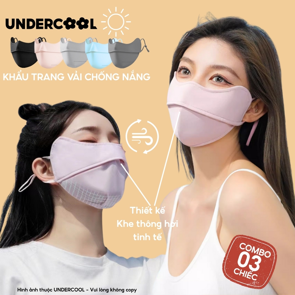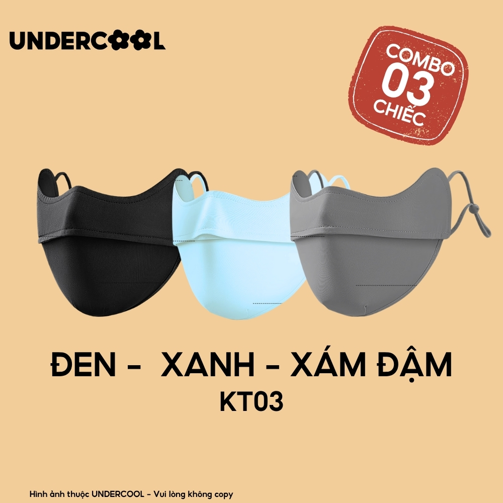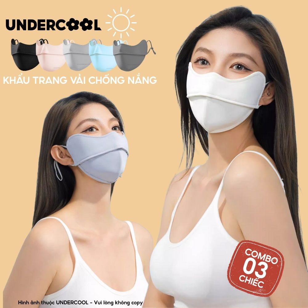 COMBO 3 Khẩu Trang Vải Chống Nắng UV 5D UNDERCOOL UPF+ Unisex Chống Nắng Chính Hãng, Vải Lụa Băng Mềm Mịn Mát CB08-KT03