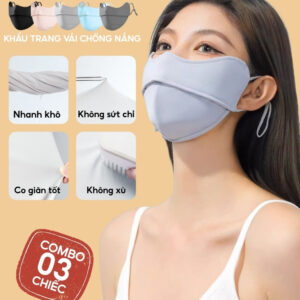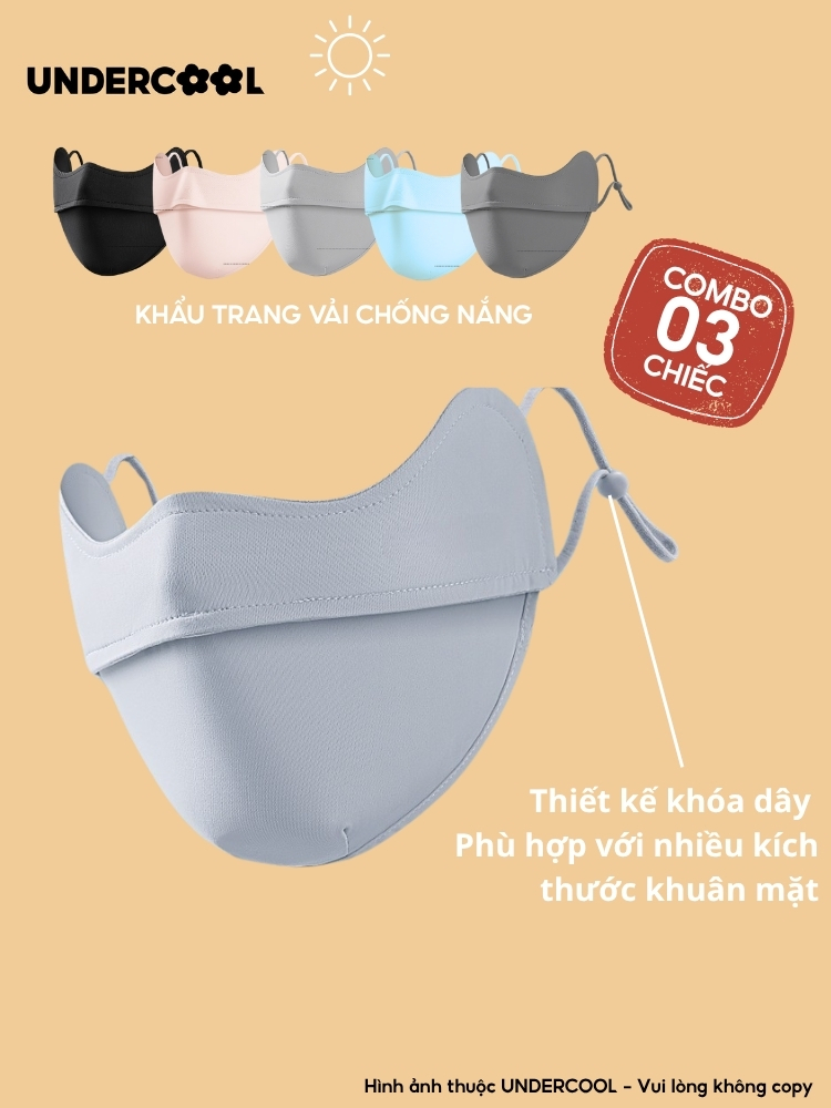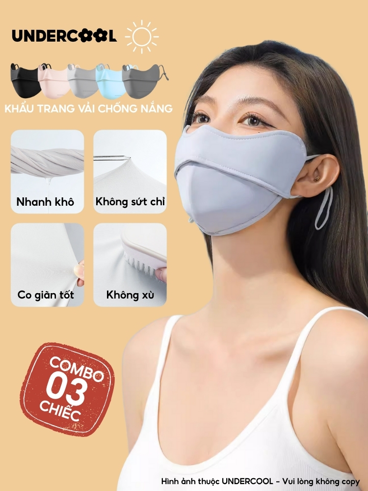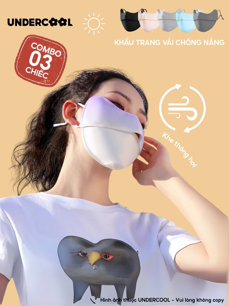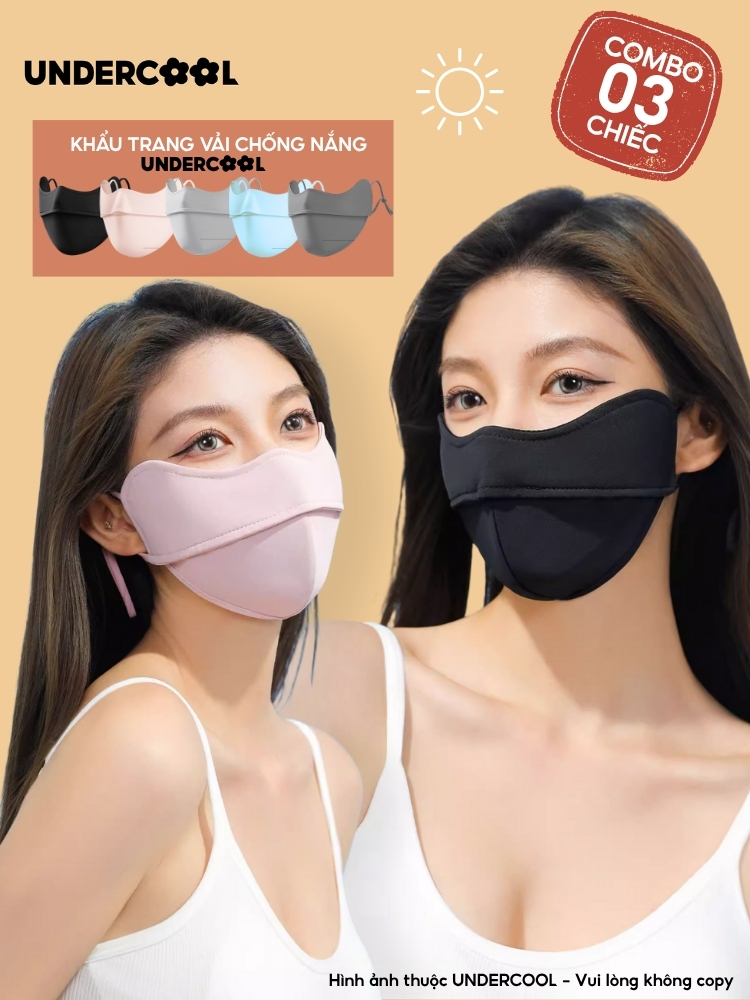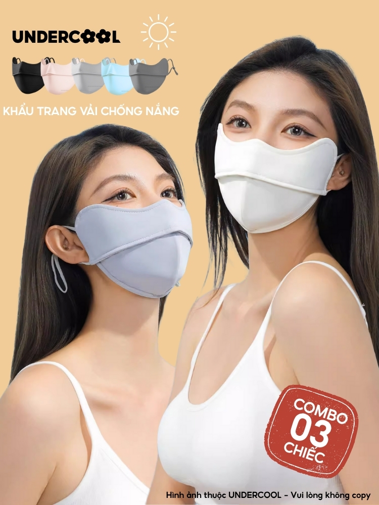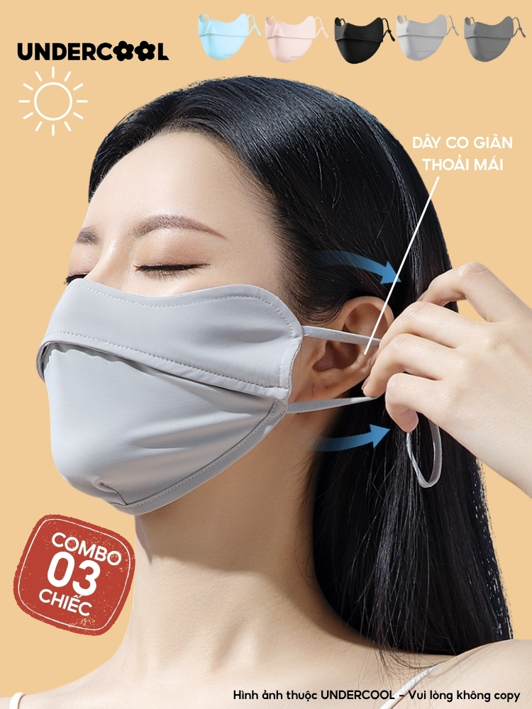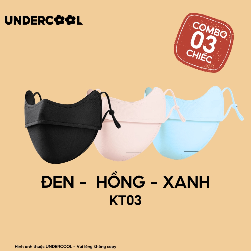 COMBO 3 Khẩu Trang Vải Chống Nắng UV 5D UNDERCOOL UPF+ Unisex Chống Nắng Chính Hãng, Vải Lụa Băng Mềm Mịn Mát CB08-KT03