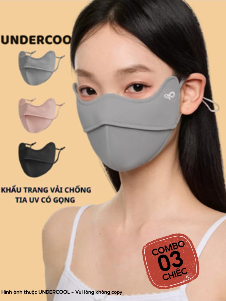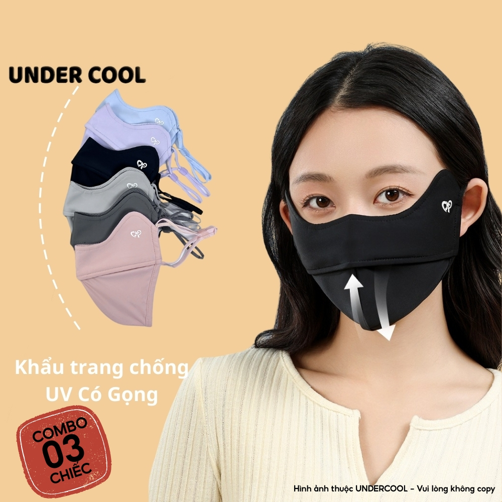 COMBO 3 Khẩu Trang Vải UNDERCOOL Có Gọng – Chống Tia UV Logo Đổi Màu Khi Gặp Ánh Nắng Không Lem Son Dáng Ôm KT05 CB06