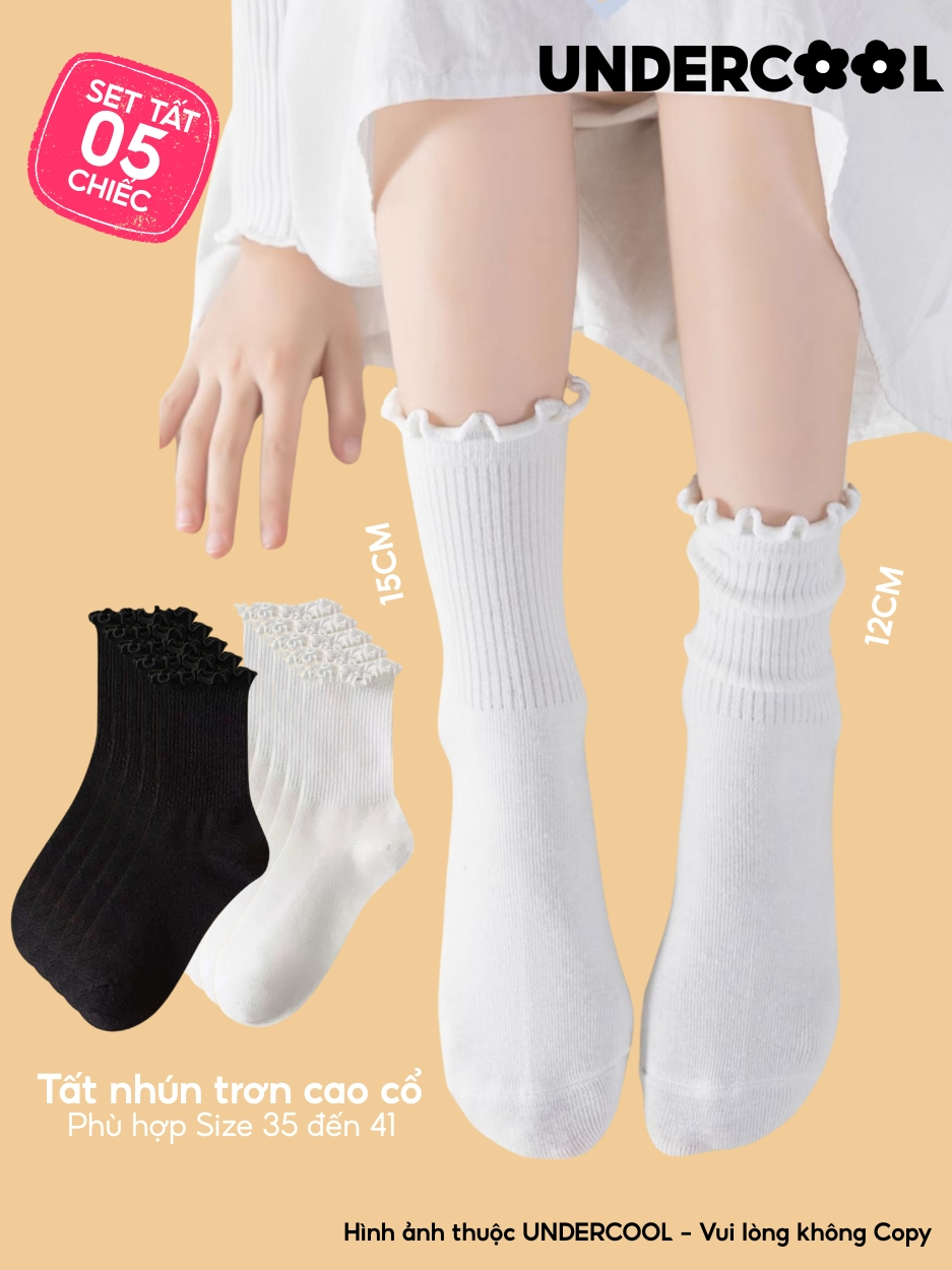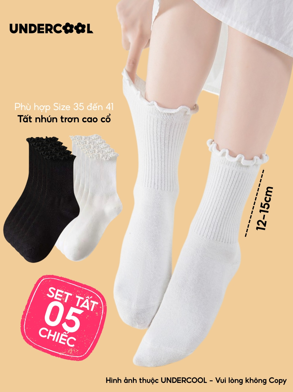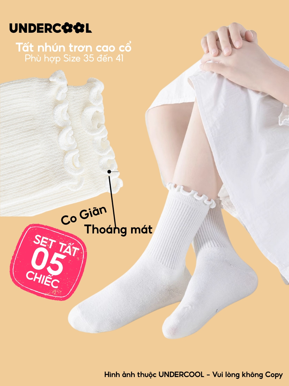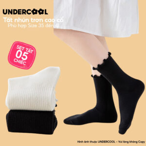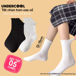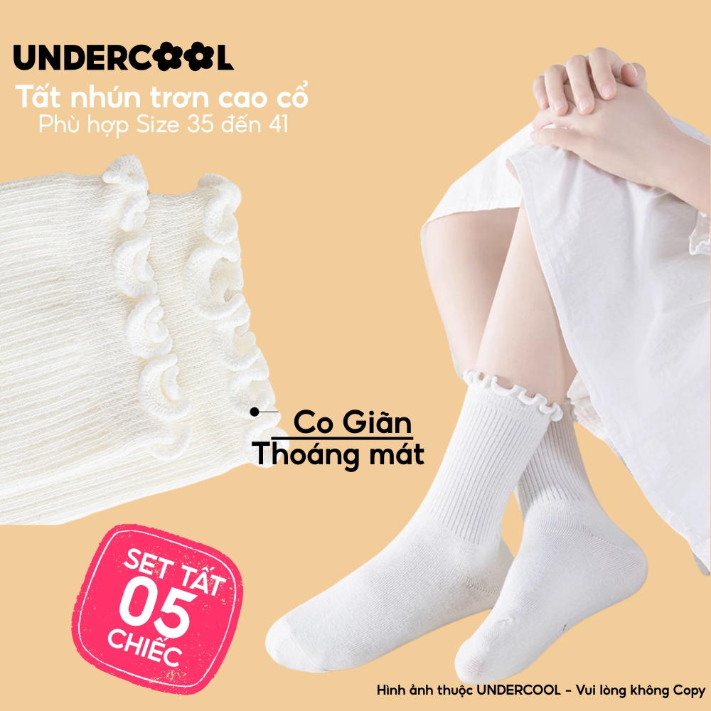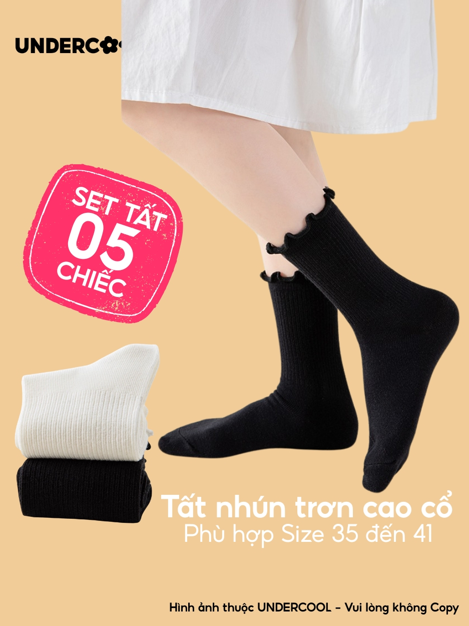 Combo 5 Đôi Tất Vớ Cổ Cao Nữ Bèo Nhún UNDERCOOL Cotton Trơn – Vớ chân Chất Cotton Êm Ái, Dày Dặn Mềm, Thoáng Khí CB-TC68