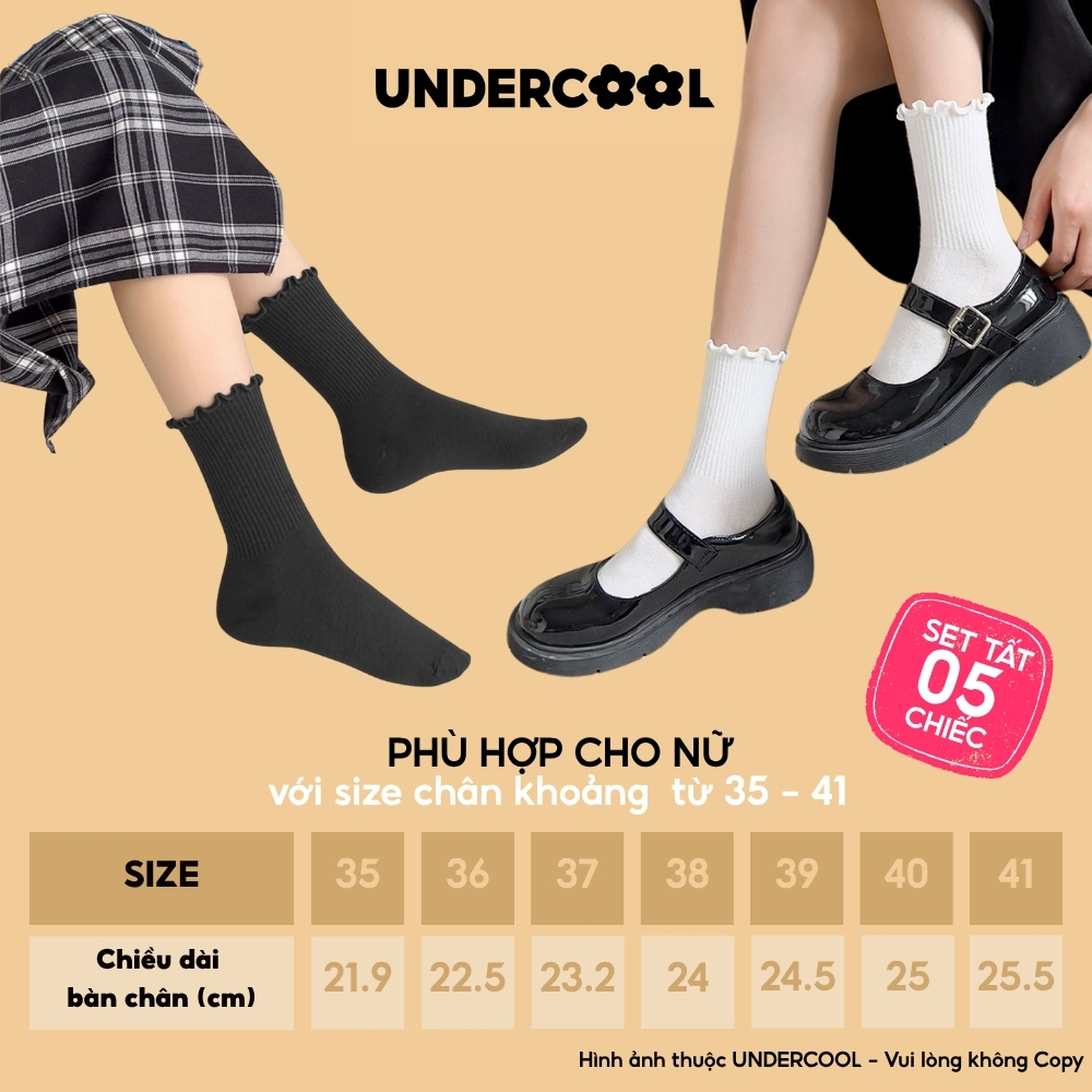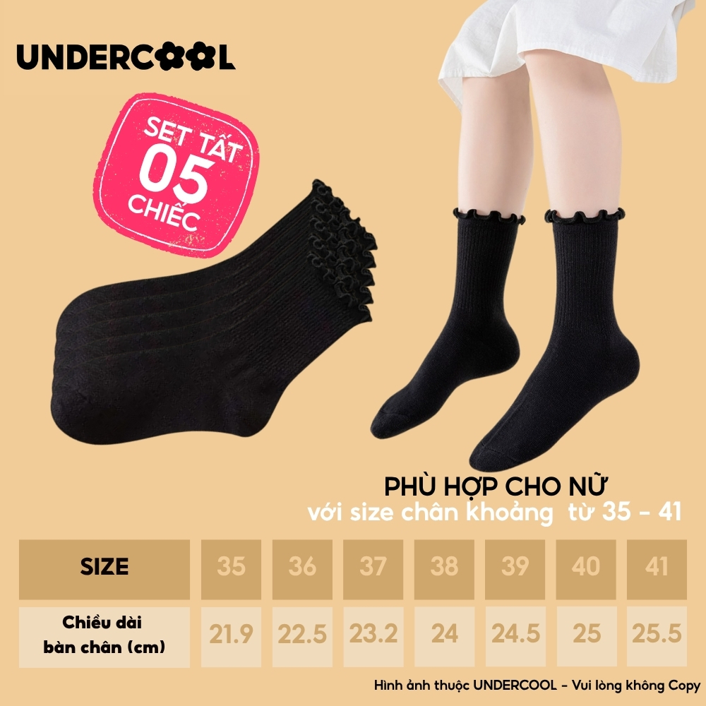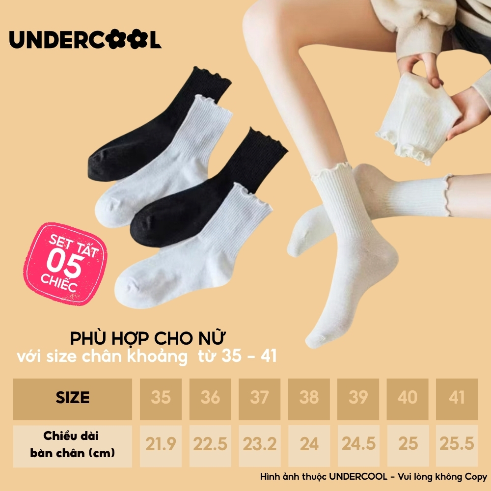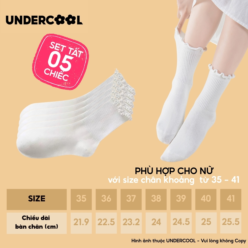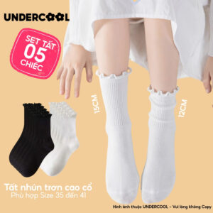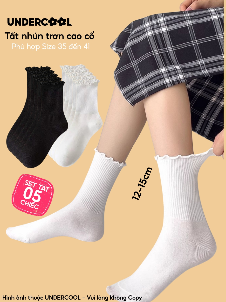 Combo 5 Đôi Tất Vớ Cổ Cao Nữ Bèo Nhún UNDERCOOL Cotton Trơn – Vớ chân Chất Cotton Êm Ái, Dày Dặn Mềm, Thoáng Khí CB-TC68