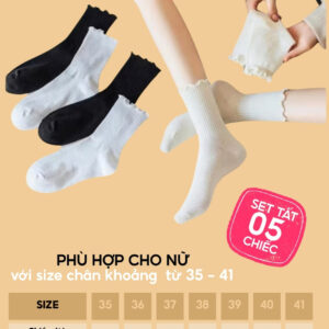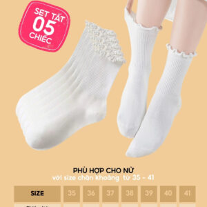 Số lượng: Combo 5 đôi gồm nhiều màu nhẹ nhàng, thanh lịch, phù hợp mặc đi học, đi làm, dạo phố.