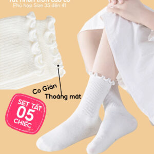 Combo 5 Đôi Tất Vớ Cổ Cao Nữ Bèo Nhún UNDERCOOL – TC90 là lựa chọn hoàn hảo cho nàng yêu thích sự nữ tính, nhẹ nhàng nhưng vẫn đảm bảo tính ứng dụng cao. Thiết kế cổ bèo mềm mại, co giãn tốt, mang đến cảm giác thoải mái cả ngày dài.