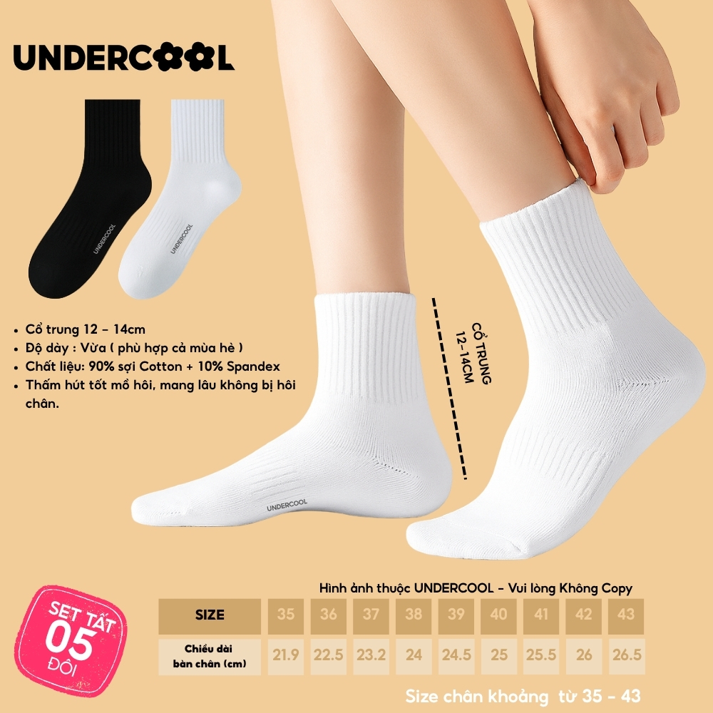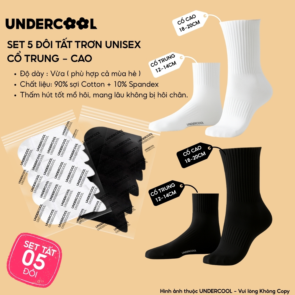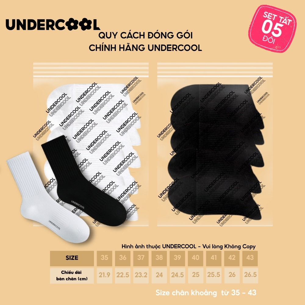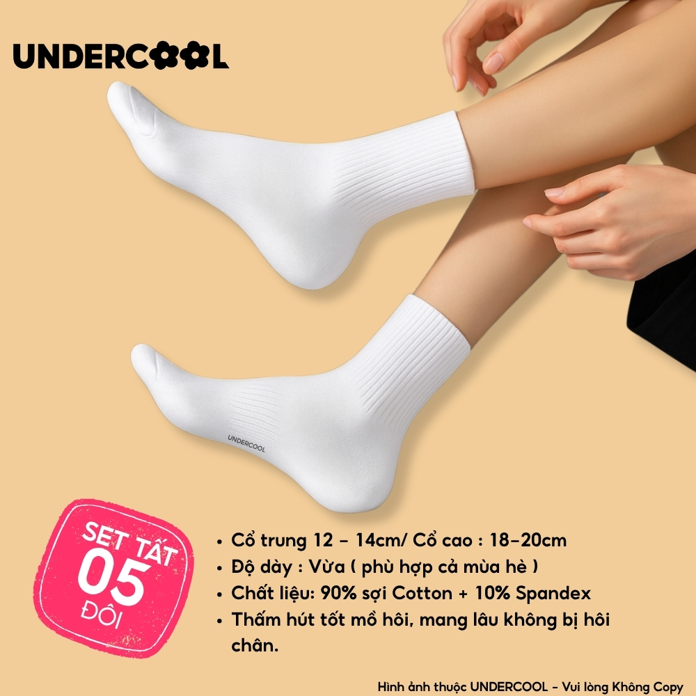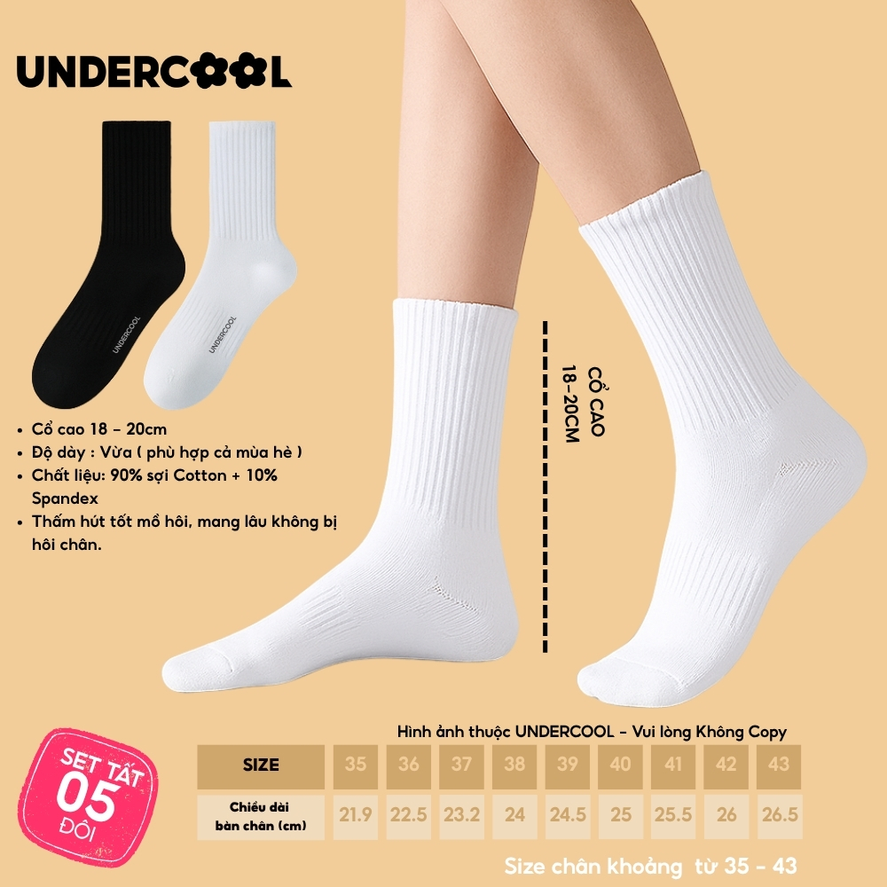 COMBO 5 đoi Tất vớ nữ unisex UNDERCOOL kiểu Hàn Quốc co giãn bốn chiều , phong cách đơn giản , chống hôi chân CB-TC96