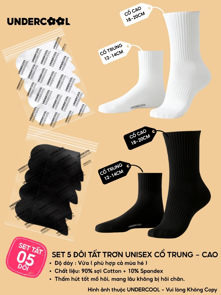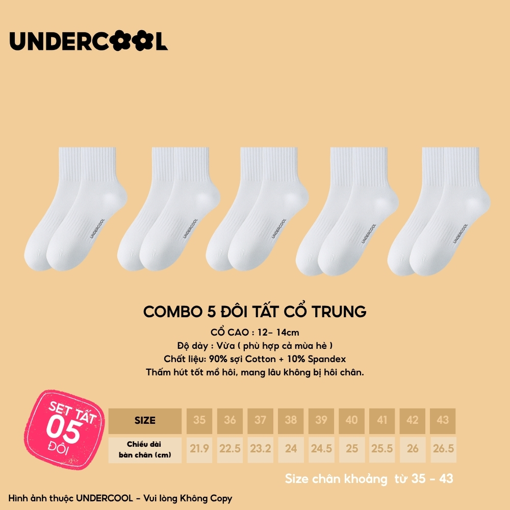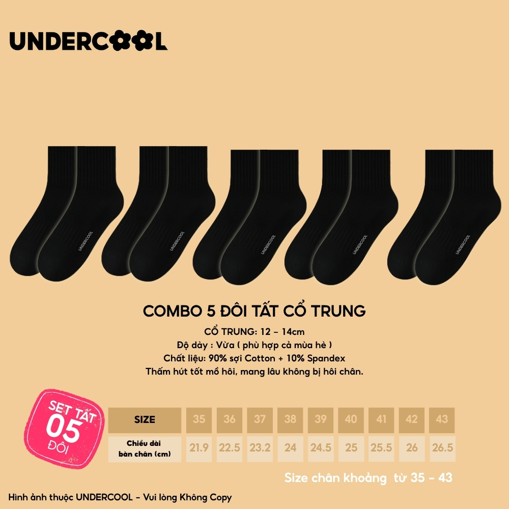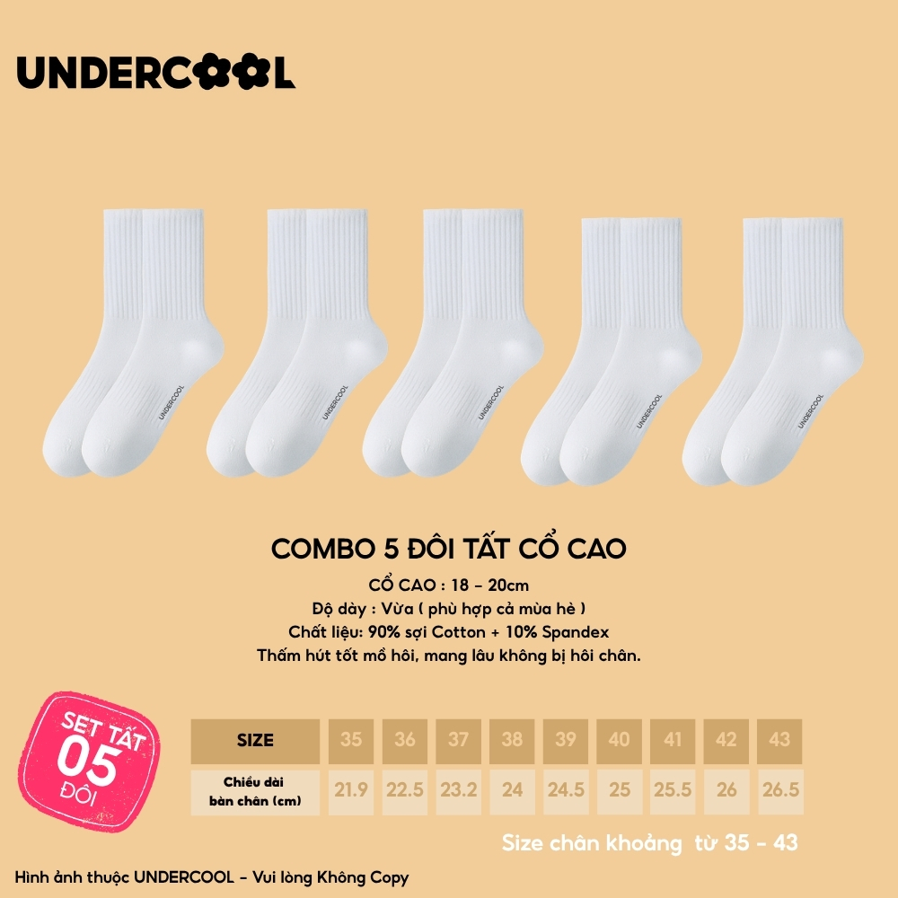 Đặt ngay COMBO 5 đôi tất vớ UNDERCOOL CB‑TC96 để trải nghiệm sự khác biệt trong từng bước đi!