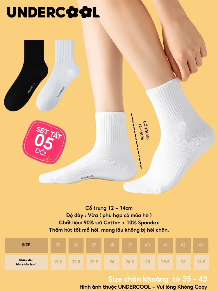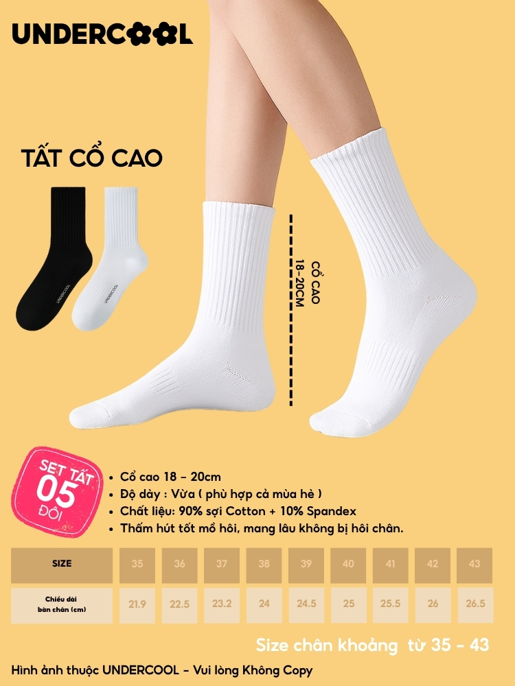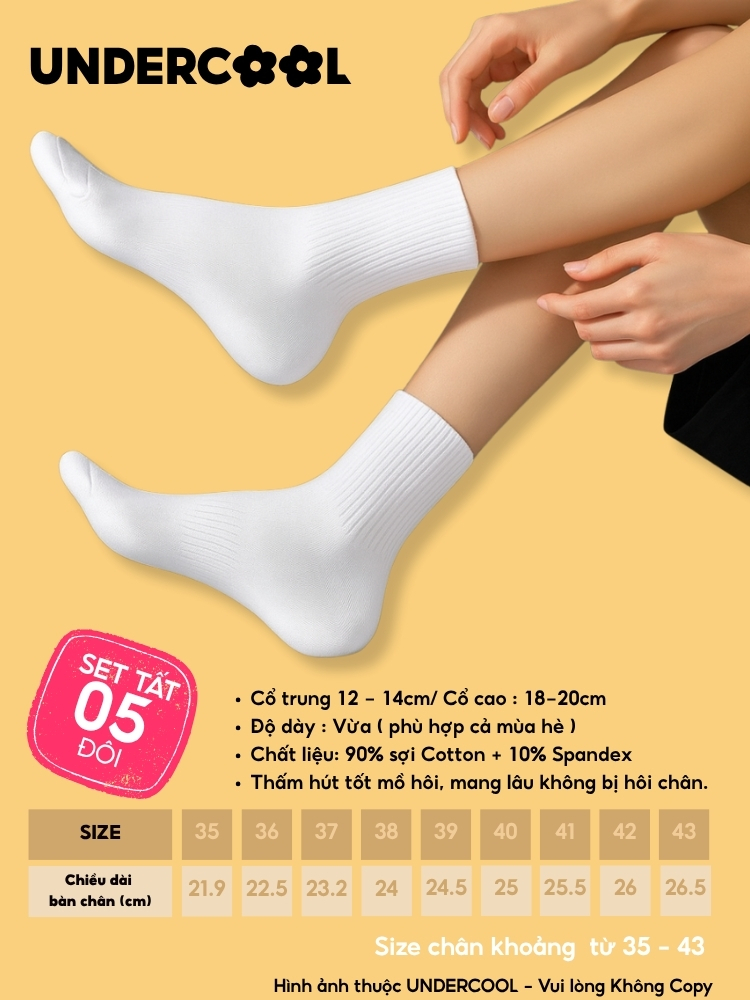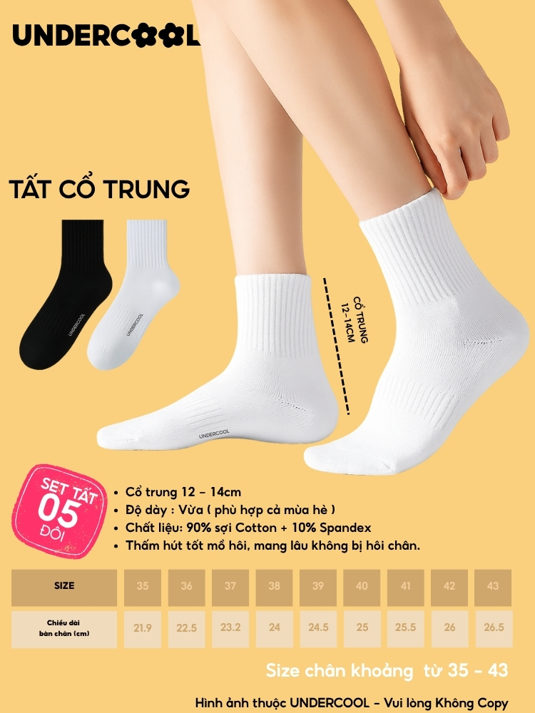 Đặt ngay COMBO 5 đôi tất vớ UNDERCOOL CB‑TC96 để trải nghiệm sự khác biệt trong từng bước đi!