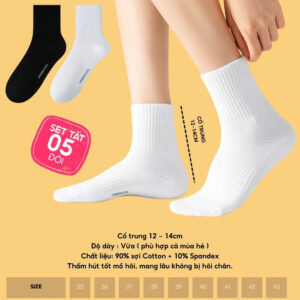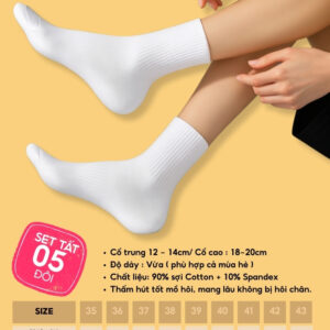 Khám phá sự tiện dụng và thời trang với COMBO 5 đôi tất vớ nữ unisex UNDERCOOL CB‑TC96. Thiết kế theo phong cách Hàn Quốc đơn giản nhưng cực kỳ trẻ trung, giúp bạn dễ dàng phối với mọi trang phục. Sản phẩm thích hợp cho cả nam và nữ, với chất vải co giãn 4 chiều thoáng mát, khử mùi và kháng khuẩn tối ưu.