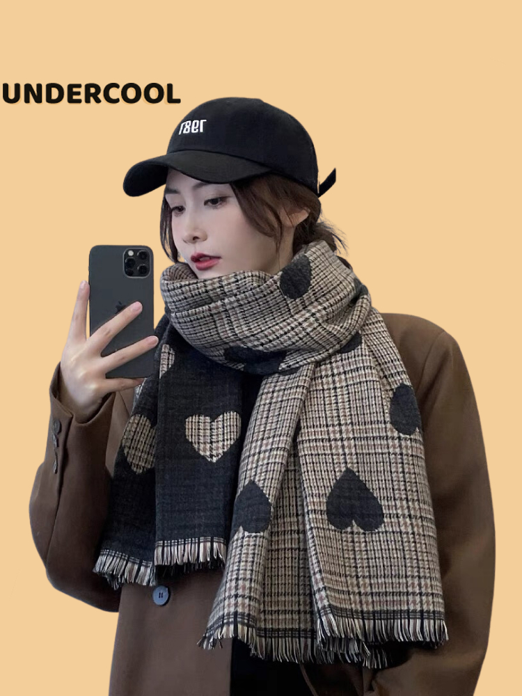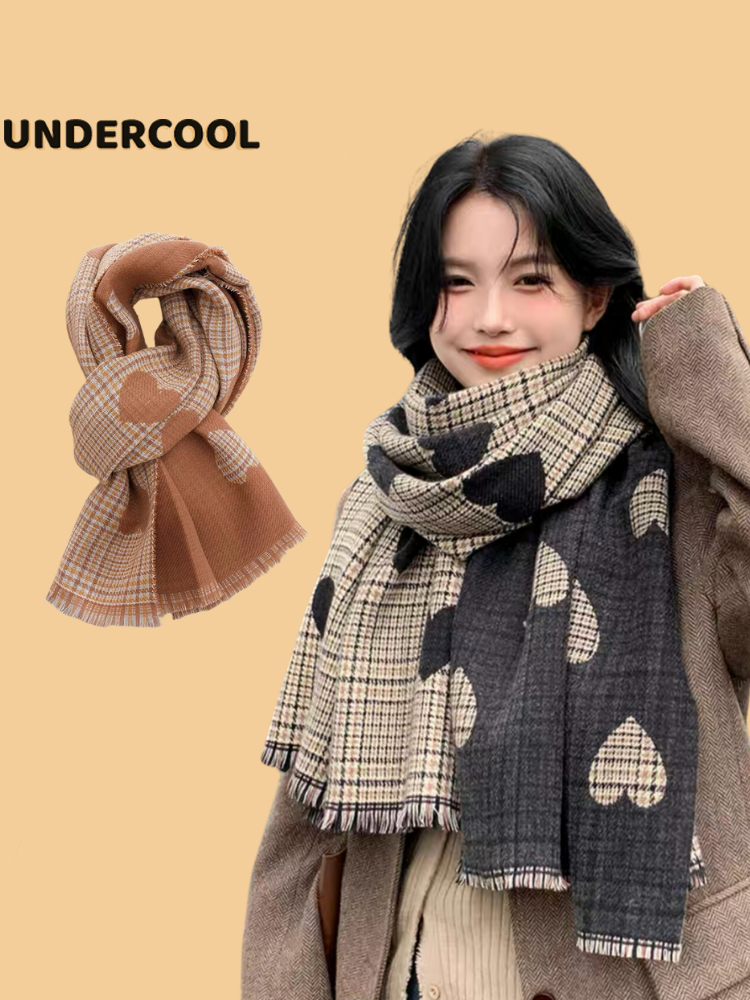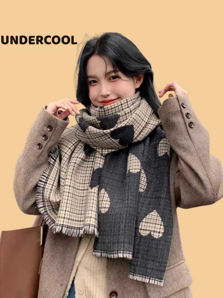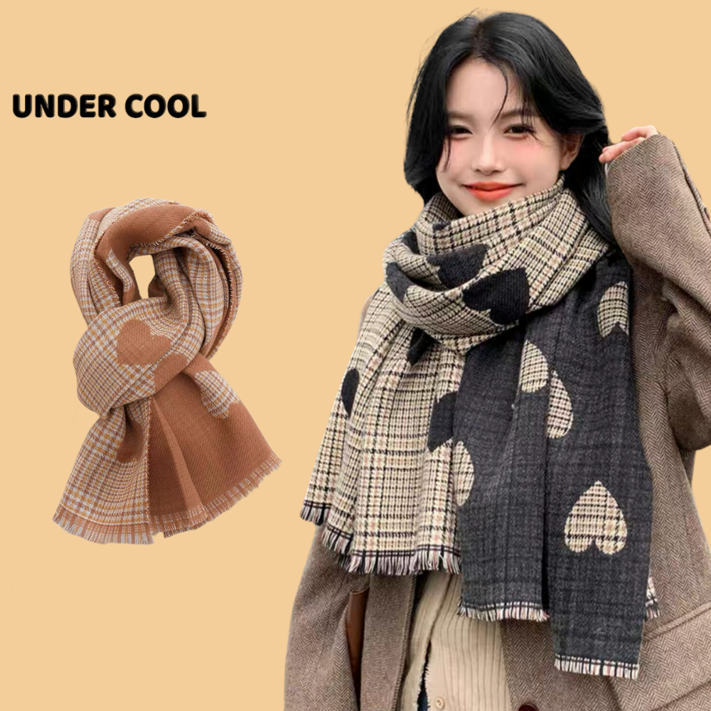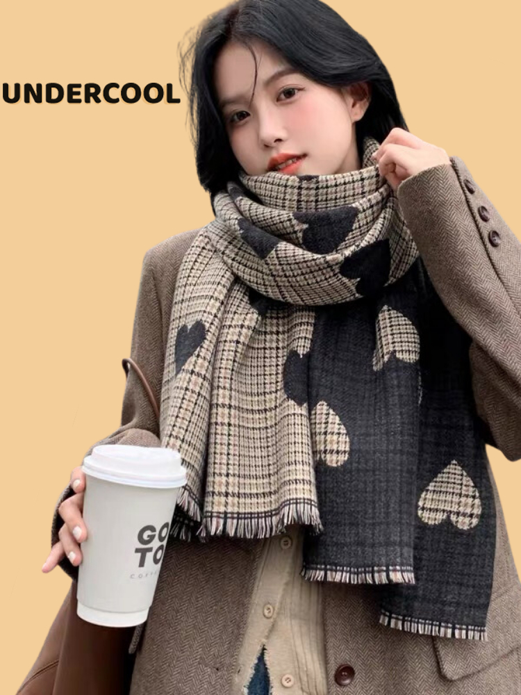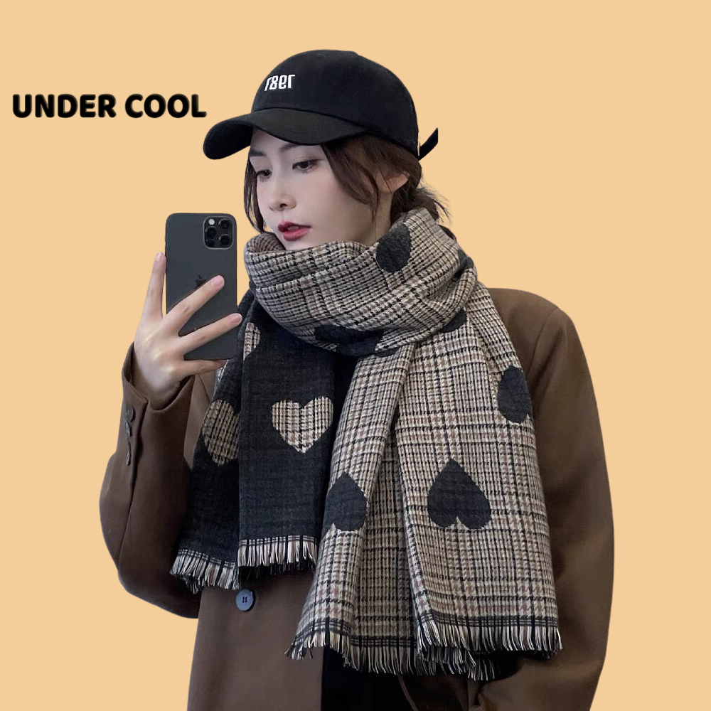 Khăn Choàng Dạ Nữ UNDERCOOL Kẻ Caro Tim 2 Màu
