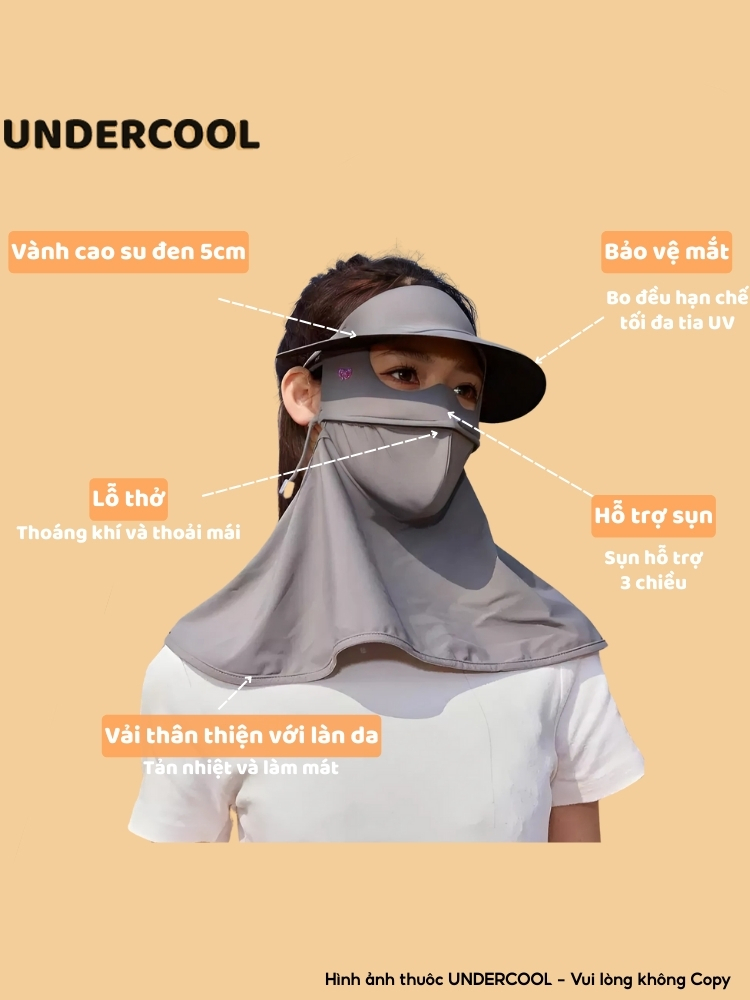 Khẩu Trang Chống Nắng Bảo Vệ Vùng Cổ Full Face Kèm Lưỡi Trai Che Nắng UNDERCOOL Bảo Vệ Da UPF50+ KT08