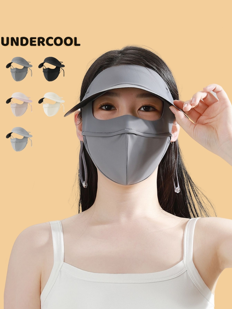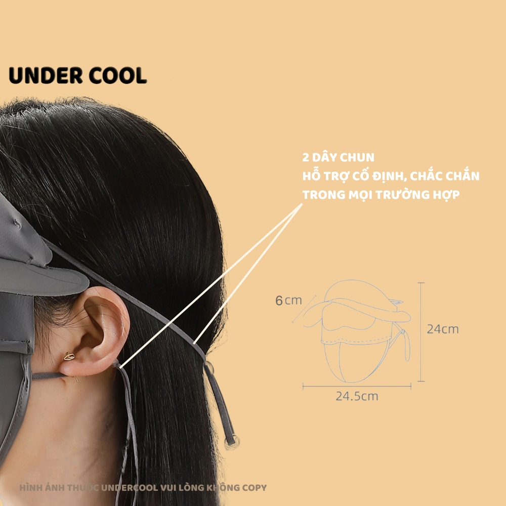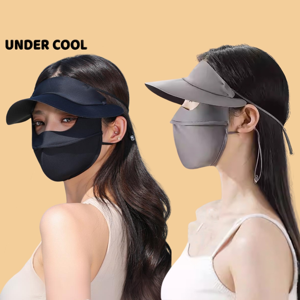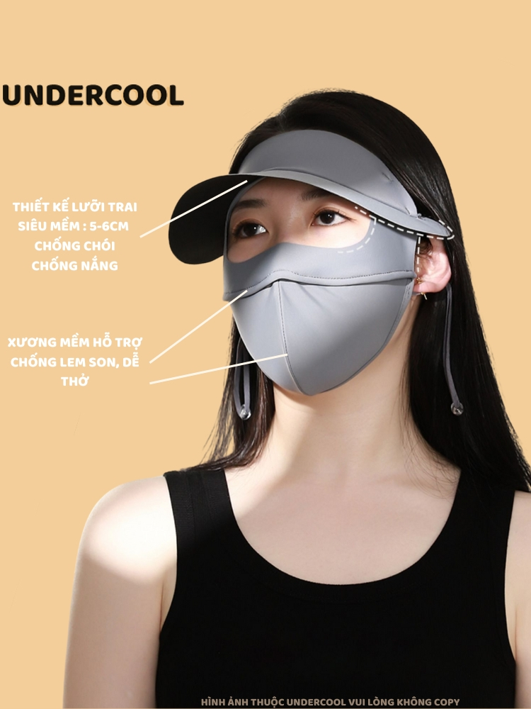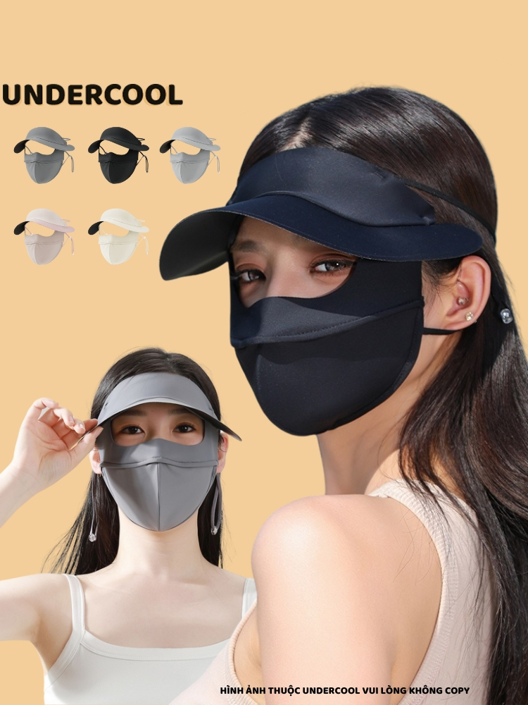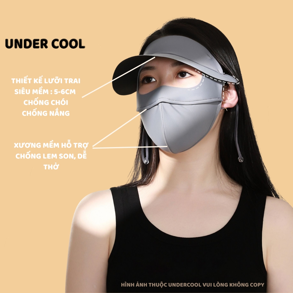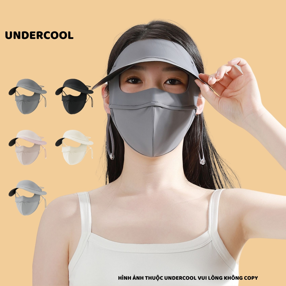 Khẩu trang kèm mũ chống nắng UNDERCOOL Thun Lụa Băng Mát Lạnh, Ngăn Bụi Mịn, khẩu trang full face vải lụa KT07