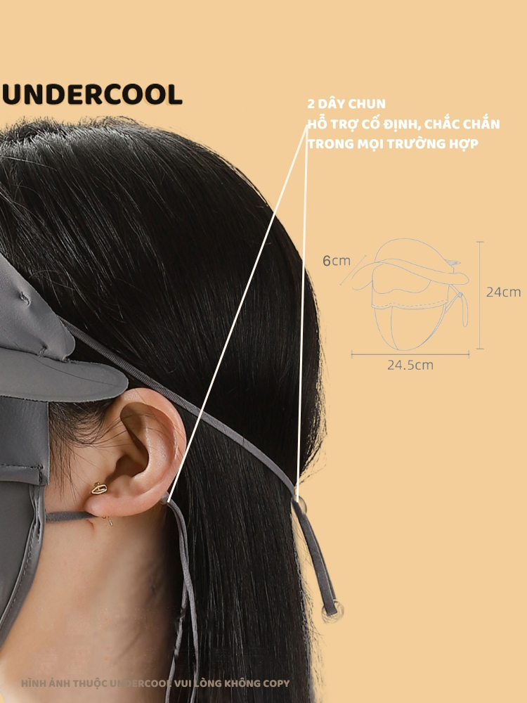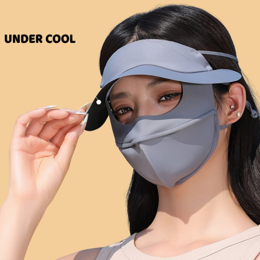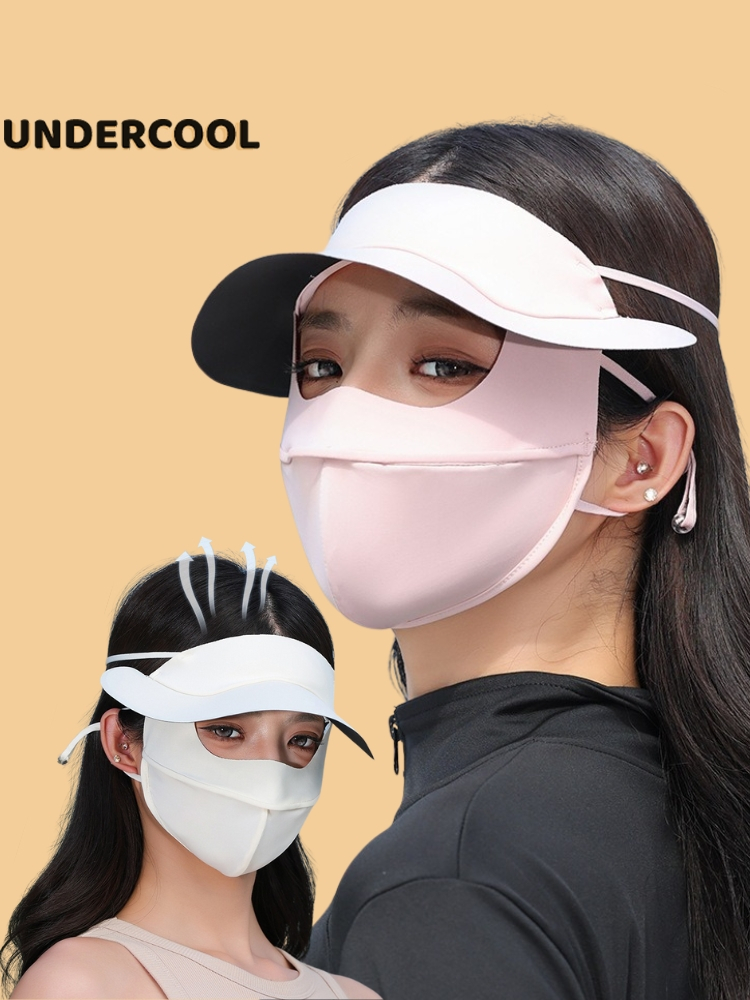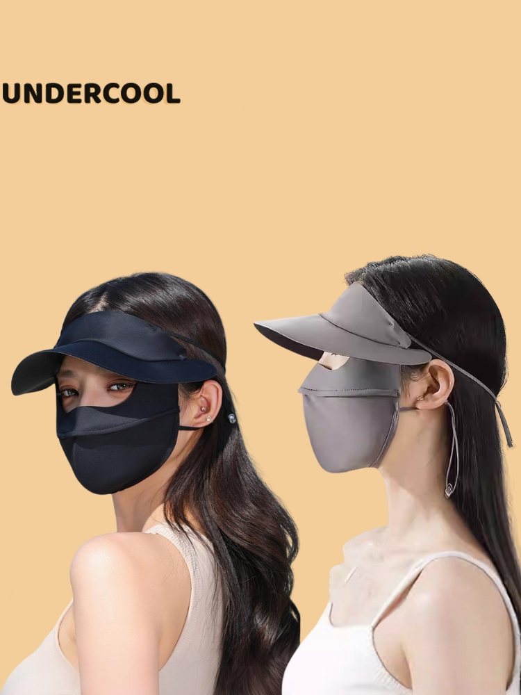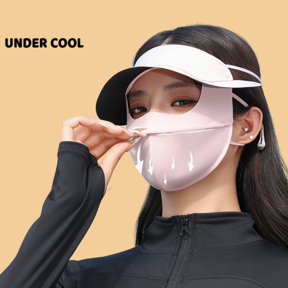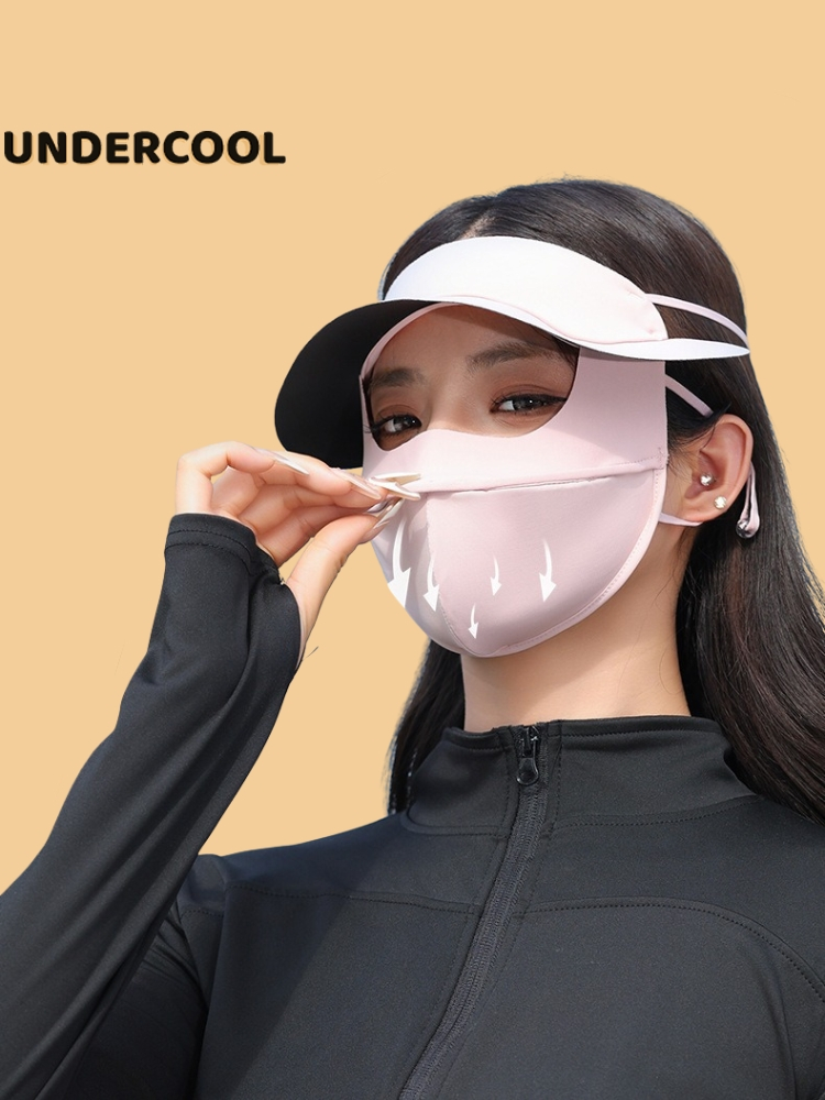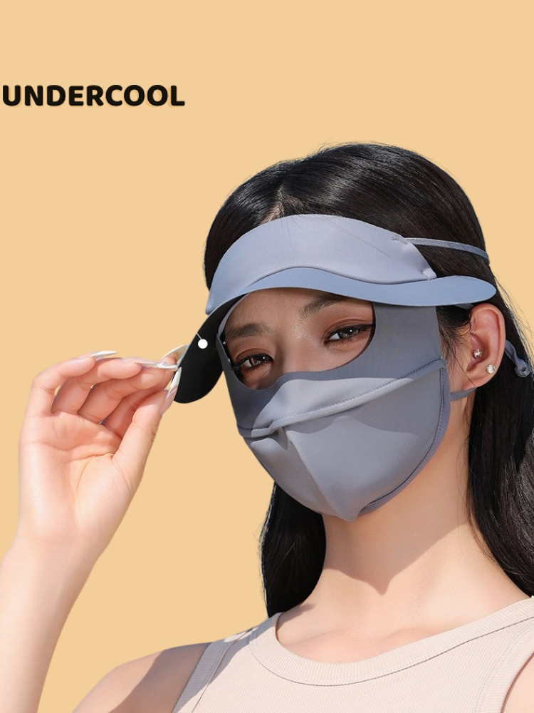 Khẩu trang kèm mũ chống nắng UNDERCOOL Thun Lụa Băng Mát Lạnh, Ngăn Bụi Mịn, khẩu trang full face vải lụa KT07