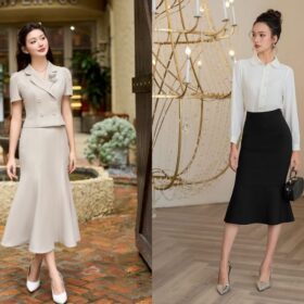 Chân váy đuôi cá là lựa chọn không còn xa lạ với phái đẹp văn phòng, vừa tôn dáng vừa mang lại nét mềm mại, duyên dáng trong từng bước đi. Thiết kế phần thân ôm sát hông giúp tôn bật đường cong một cách khéo léo, trong khi phần đuôi váy xòe nhẹ lại tạo nên sự uyển chuyển, nữ tính và vô cùng cuốn hút.
