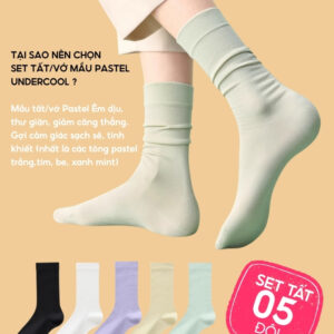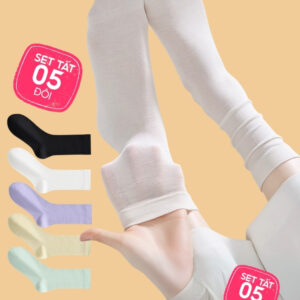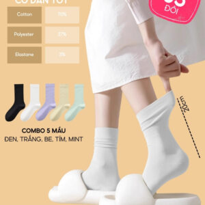 Set 5 đôi tất cotton cổ cao mềm mịn, đàn hồi gấp 6 lần thông thường, thấm hút mồ hôi tốt giúp chân luôn khô thoáng cả ngày. Thiết kế tối giản chuẩn phong cách Hàn Quốc, dễ phối từ sneaker, giày thể thao đến outfit streetstyle.