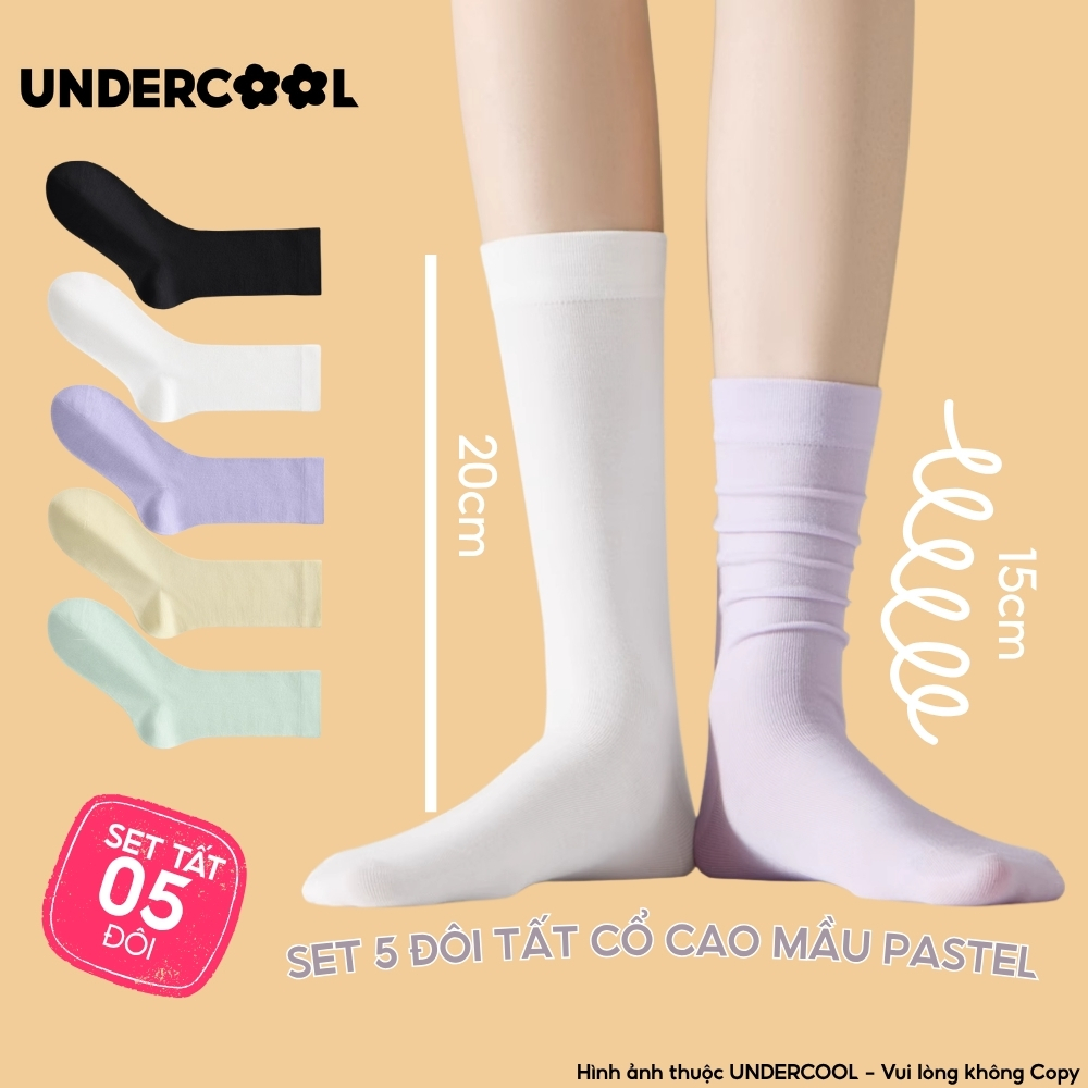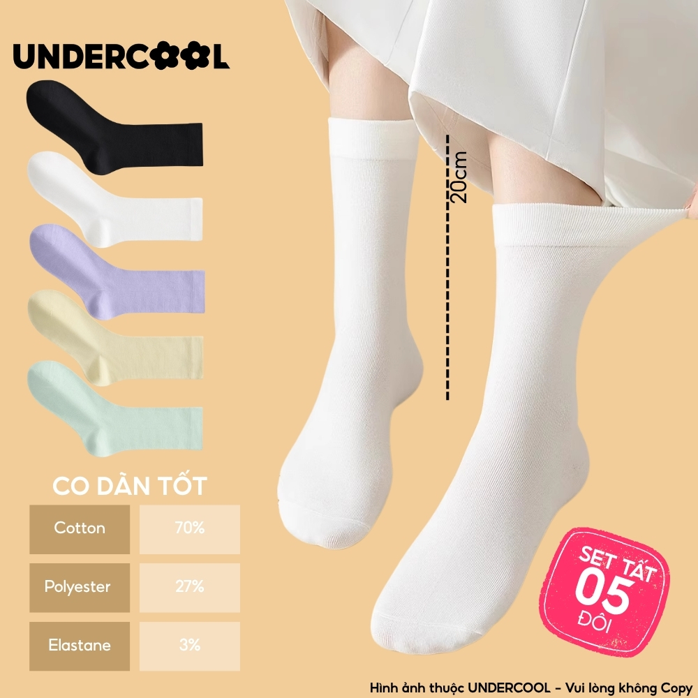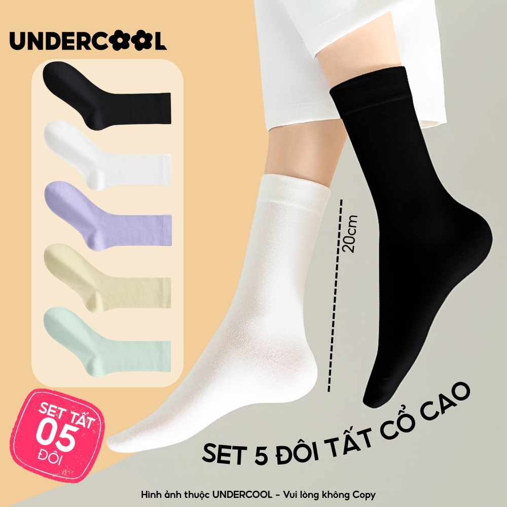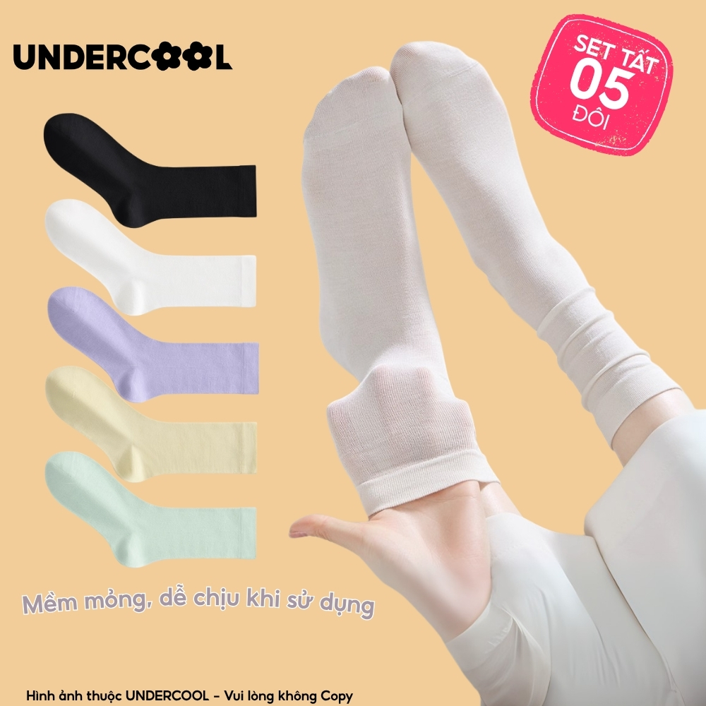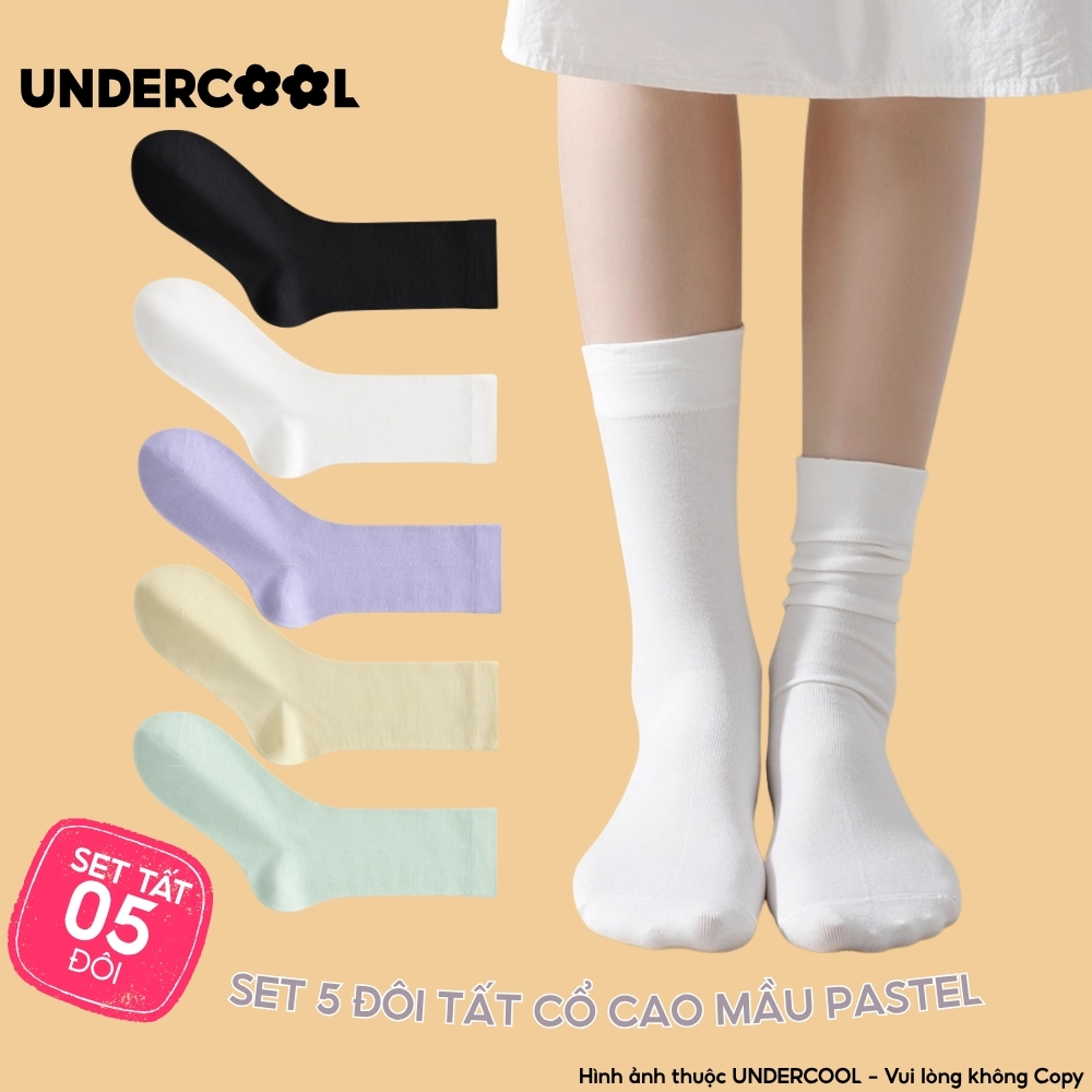 Set 5 Đôi Tất Cotton Cổ Cao Mỏng Nữ UNDERCOOL Mềm Mại Màu Trơn Phong Cách Hàn Quốc Pastel ,Thấm Hút Tốt TC93