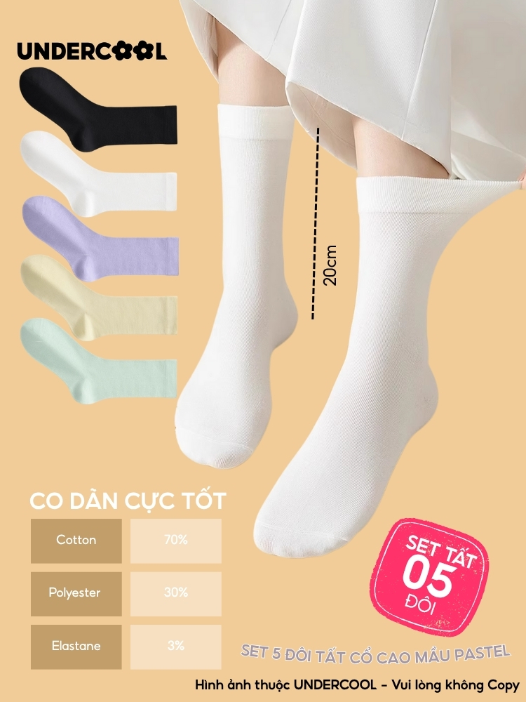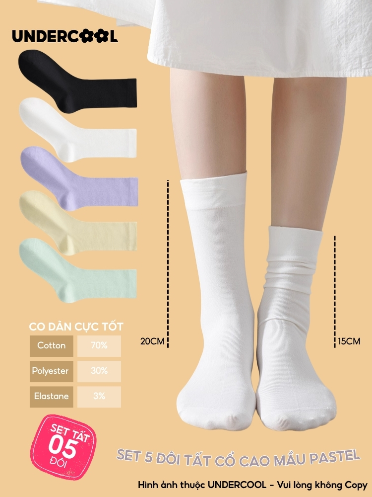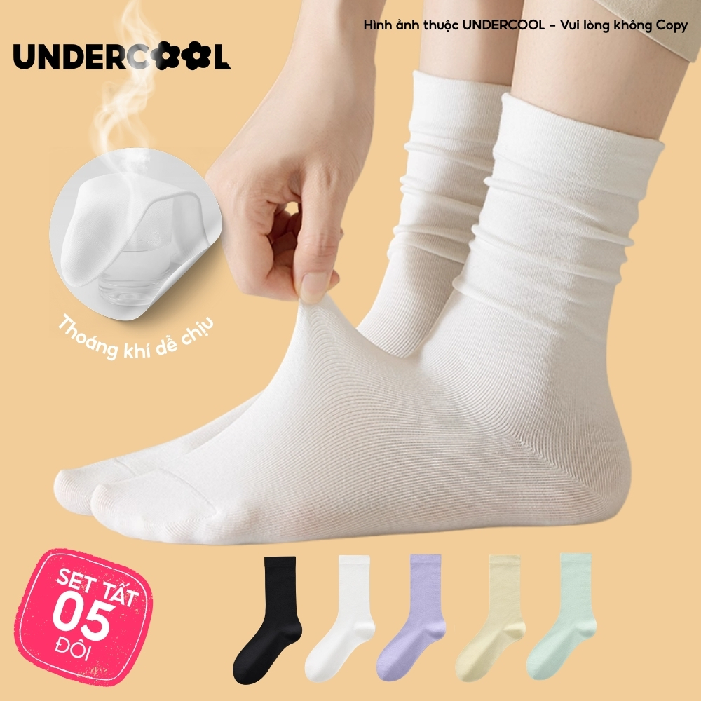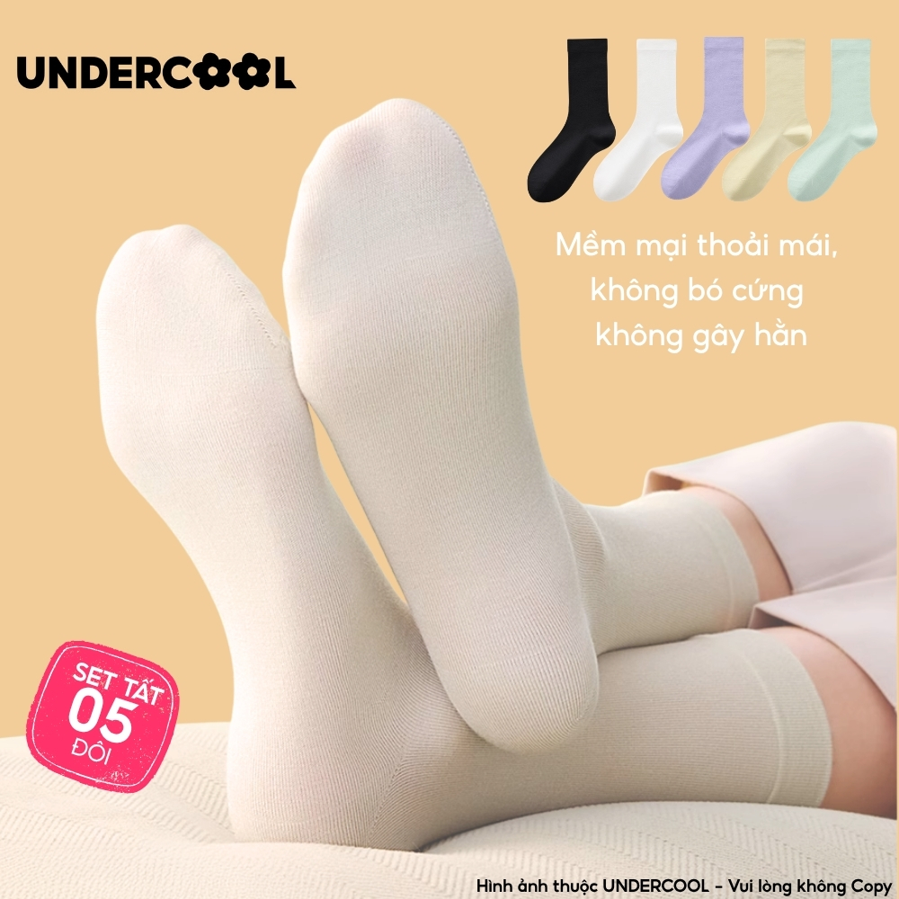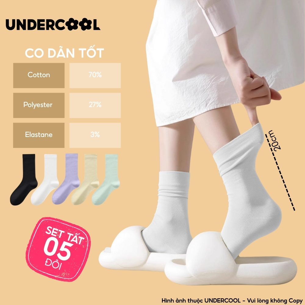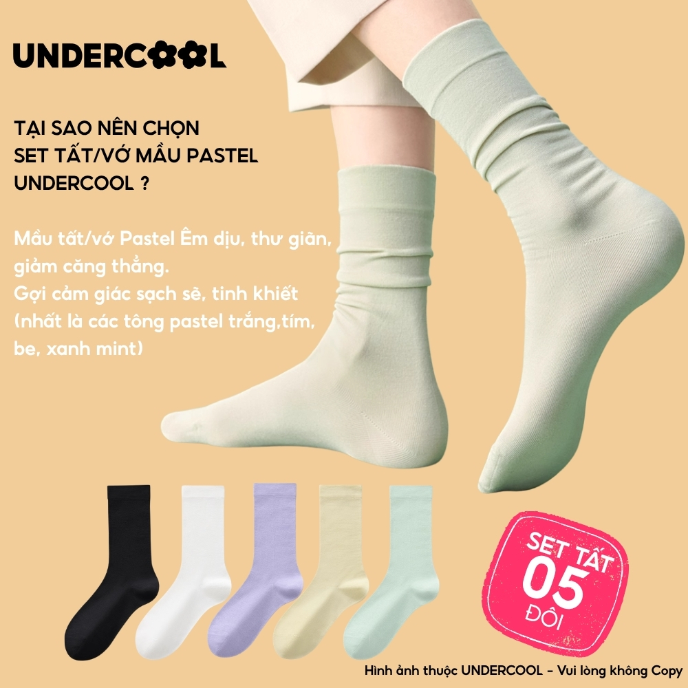 Set 5 Đôi Tất Cotton Cổ Cao Mỏng Nữ UNDERCOOL Mềm Mại Màu Trơn Phong Cách Hàn Quốc Pastel ,Thấm Hút Tốt TC93