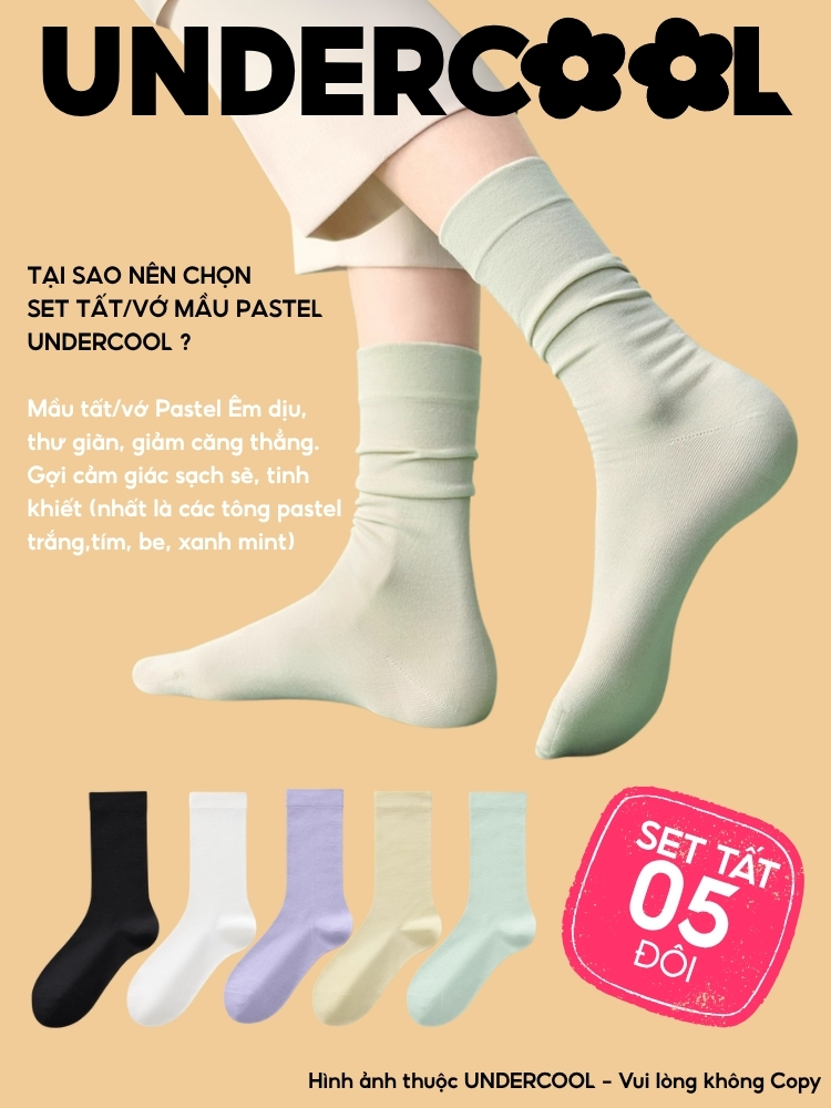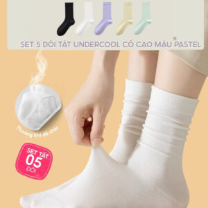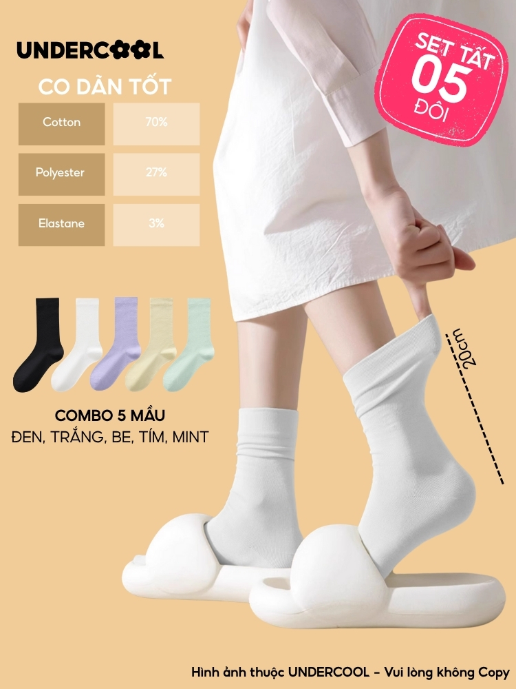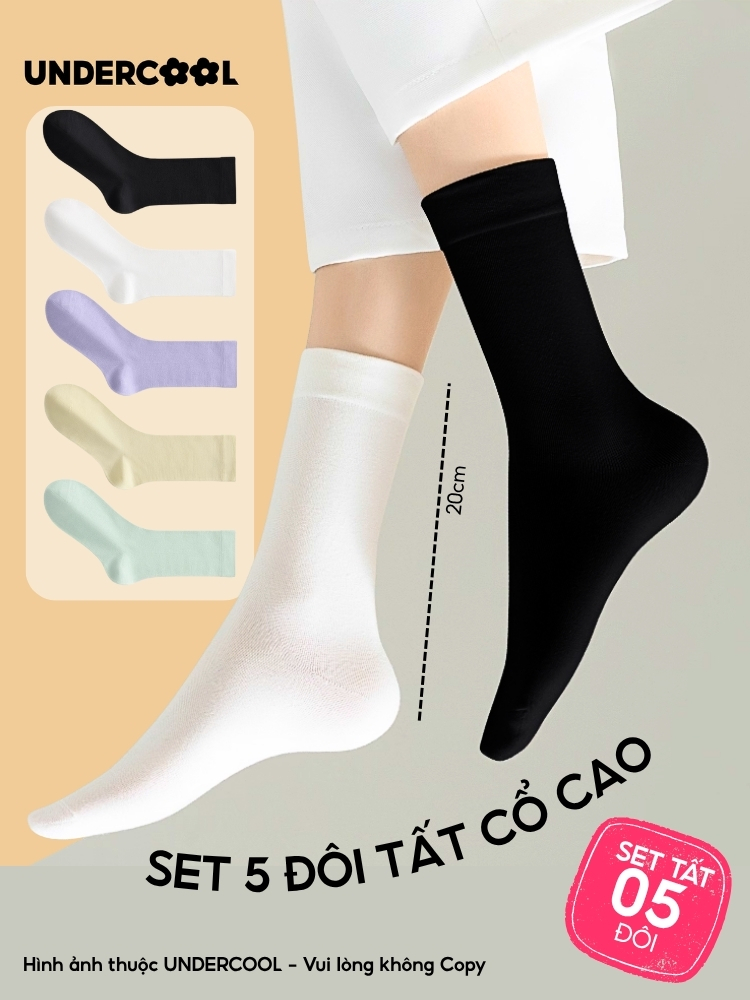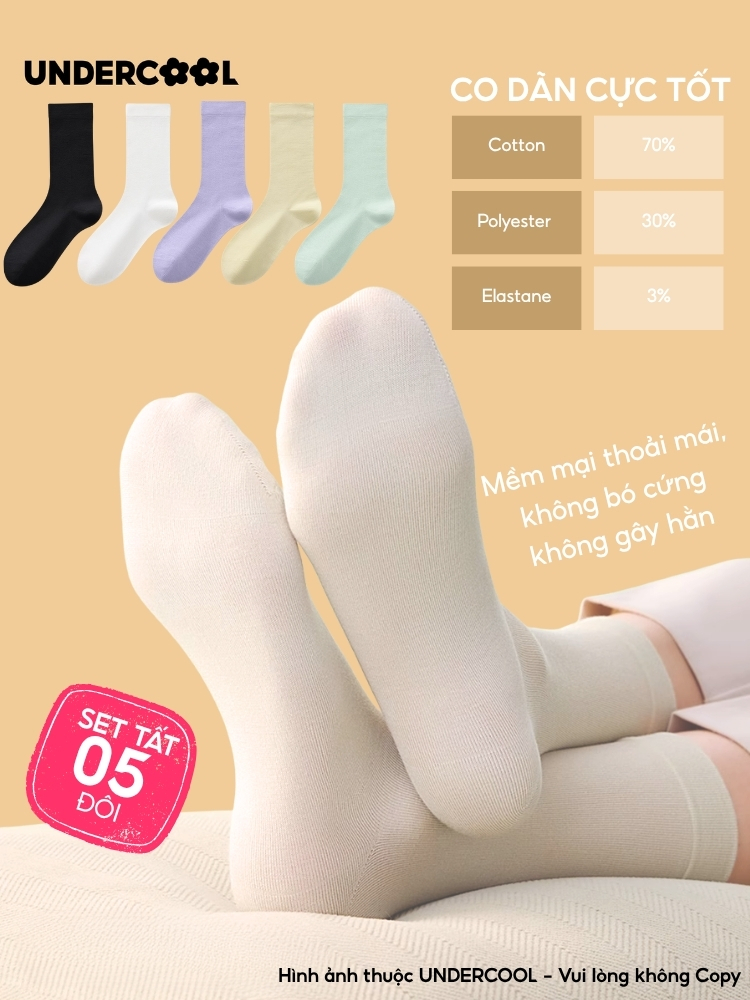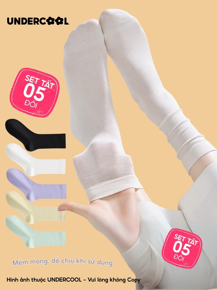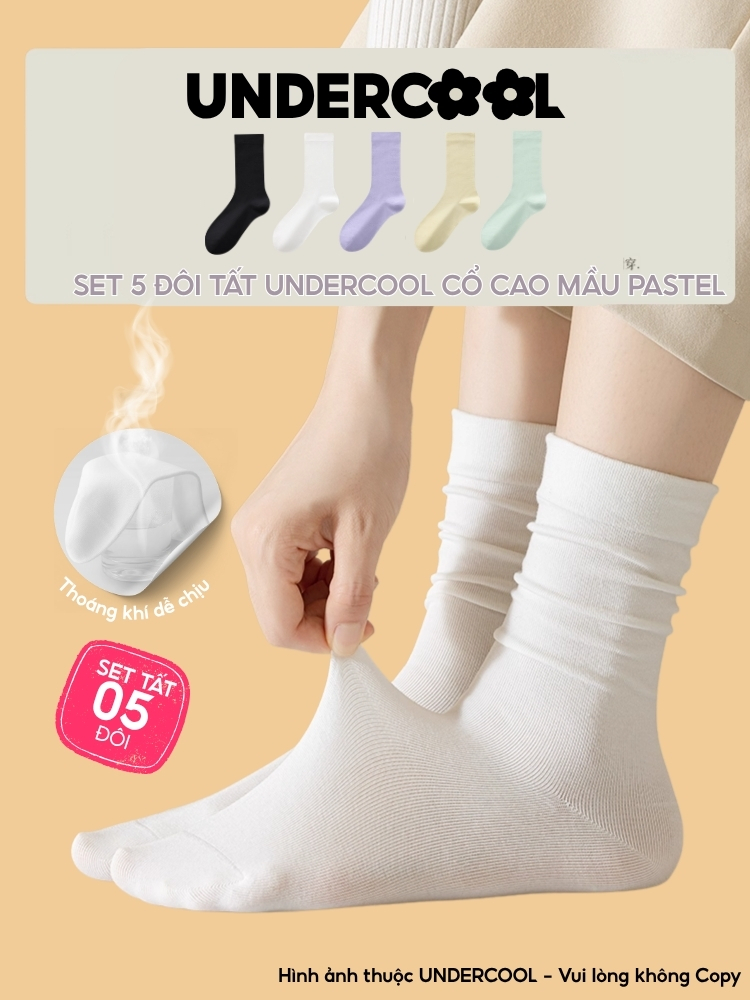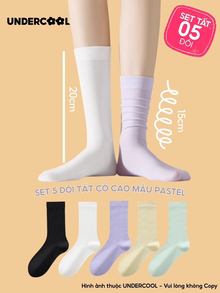 Set 5 Đôi Tất Cotton Cổ Cao Mỏng Nữ UNDERCOOL Mềm Mại Màu Trơn Phong Cách Hàn Quốc Pastel ,Thấm Hút Tốt TC93
