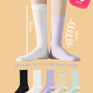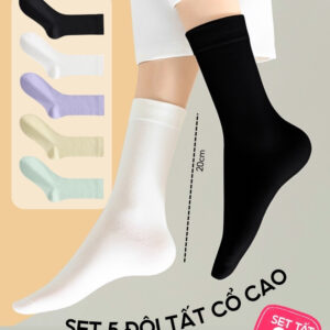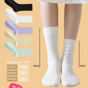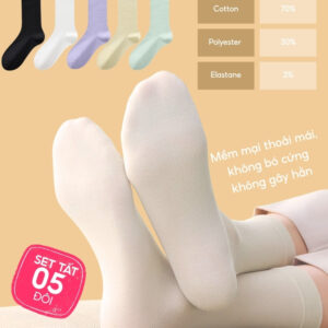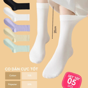 Từ khóa SEO: tất cotton cổ cao nữ, vớ nữ màu trơn phong cách Hàn Quốc, set 5 đôi tất trắng kem đen tím be, tất cổ cao 20cm size 35 36 37 38 39 40 41, vớ cotton mềm mại thấm hút.