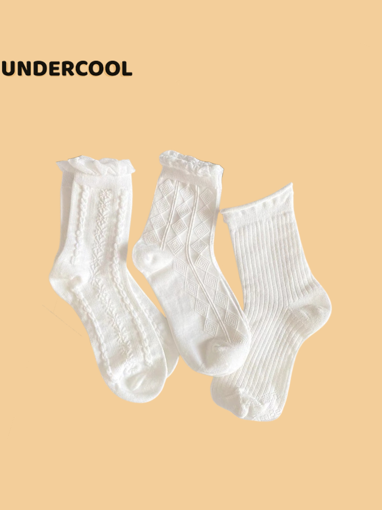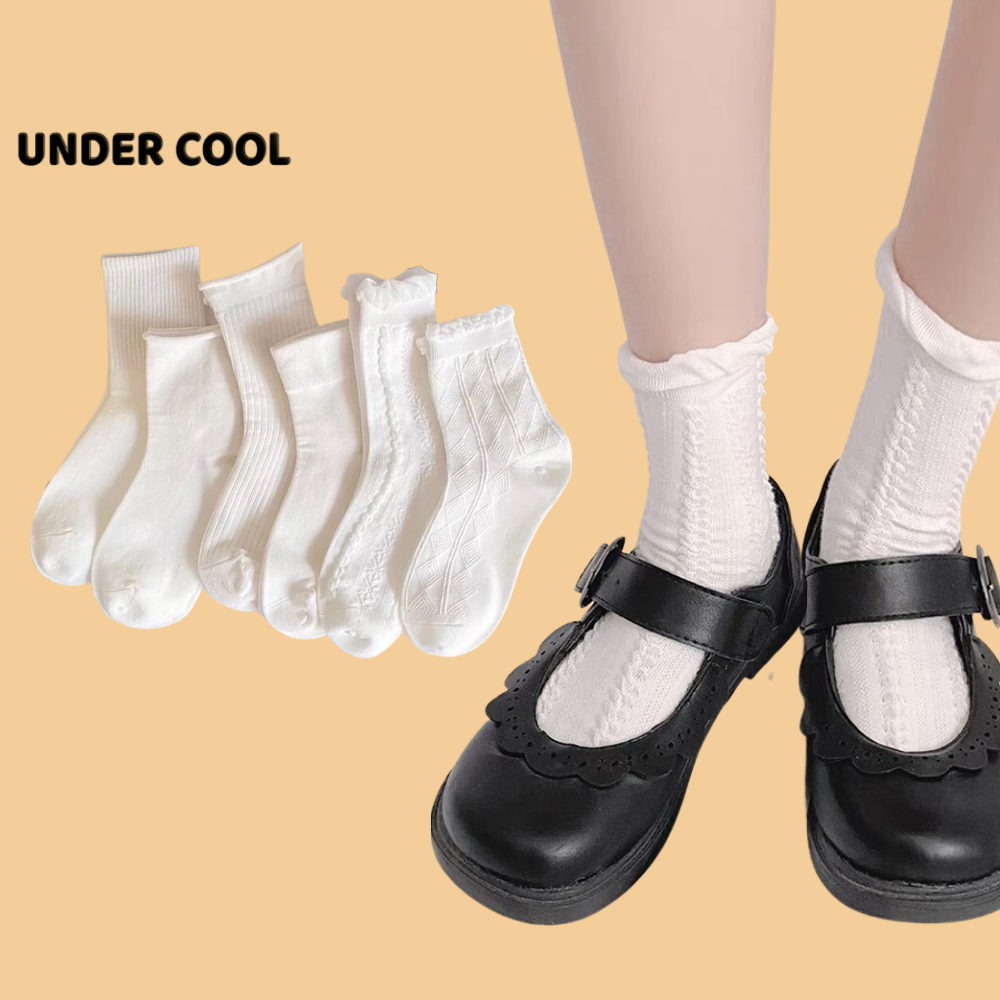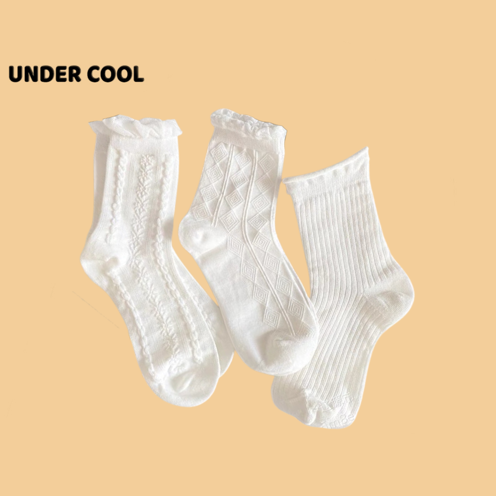 Set 5 Đôi Tất Nữ UNDERCOOL Dệt Kim Hoạ Tiết Gân Cổ Bèo