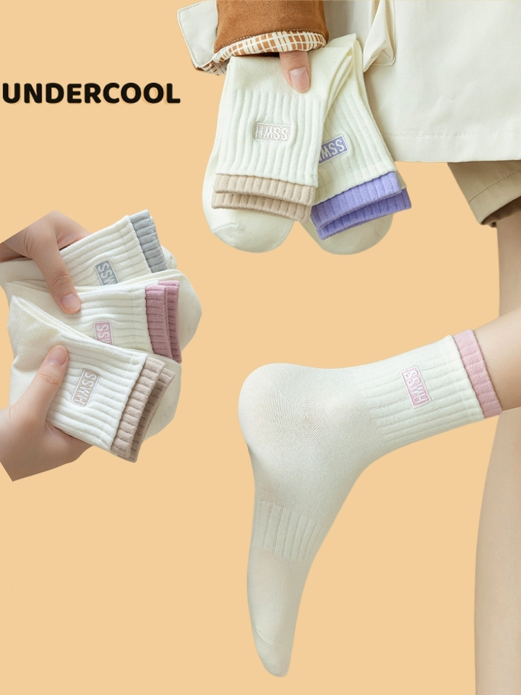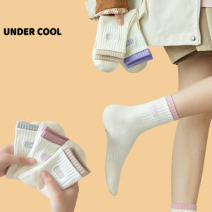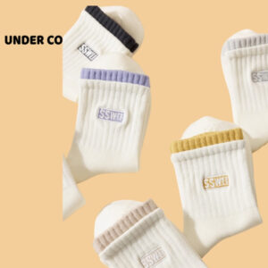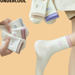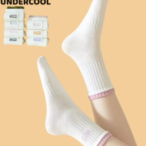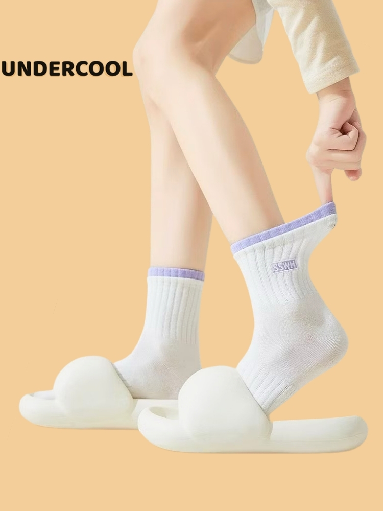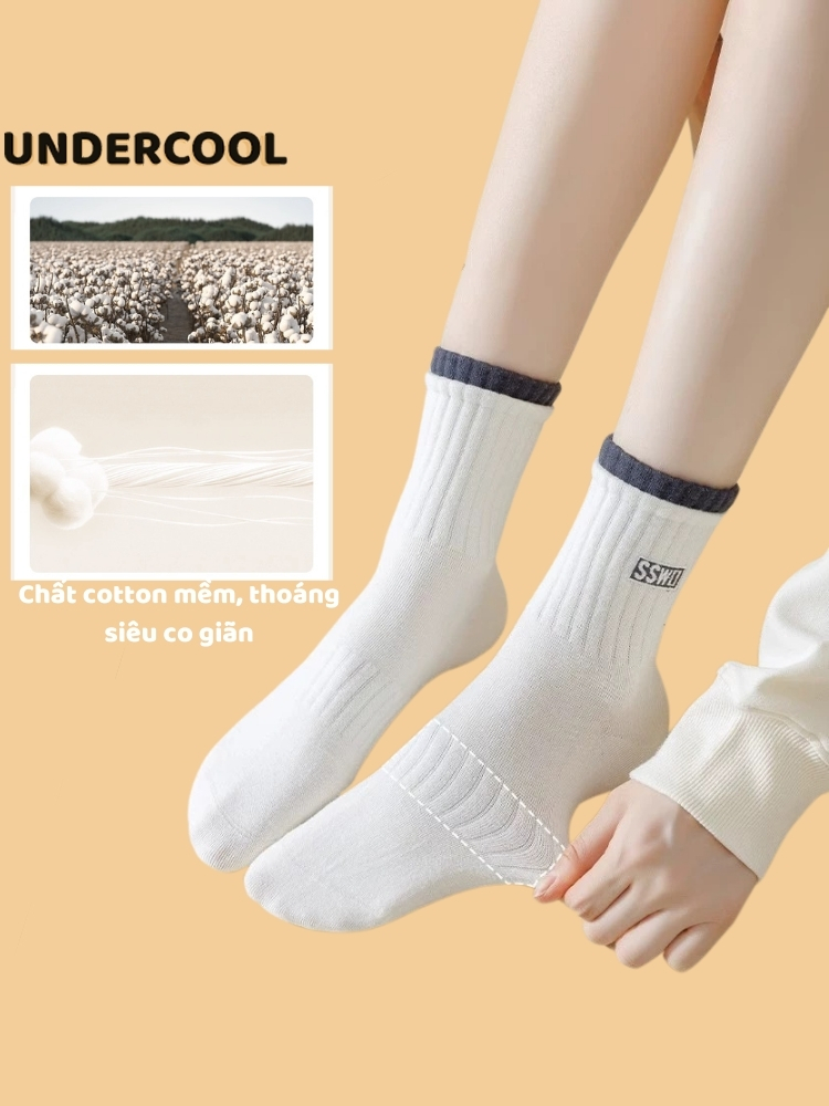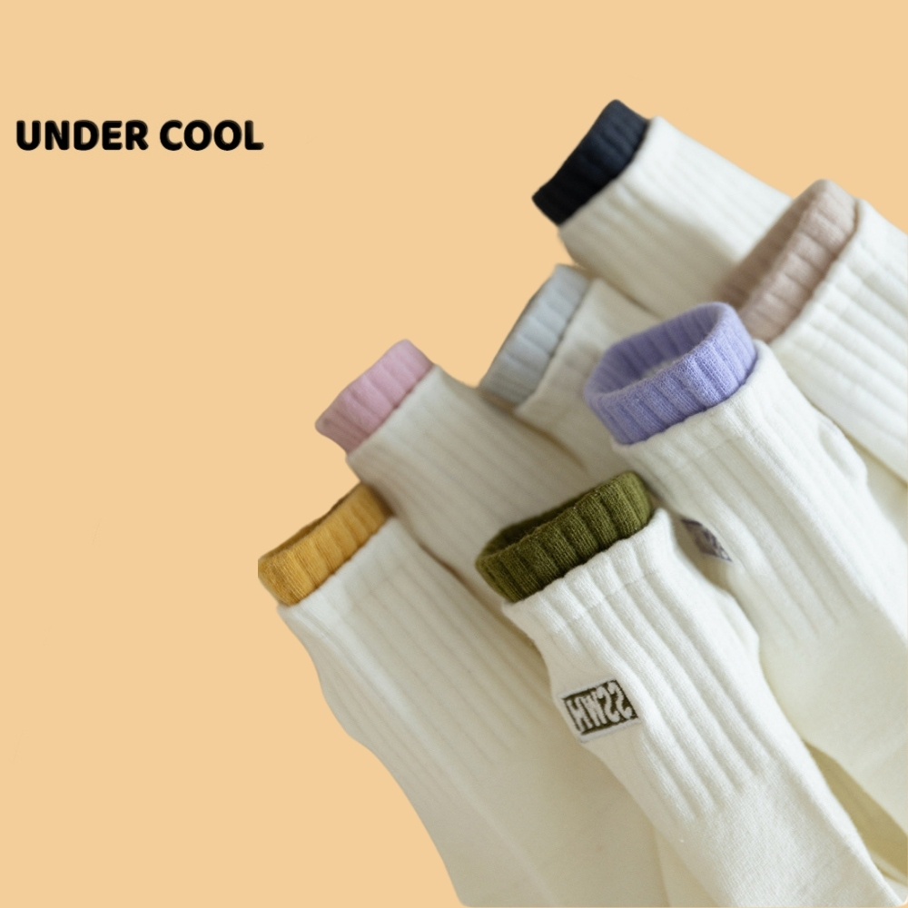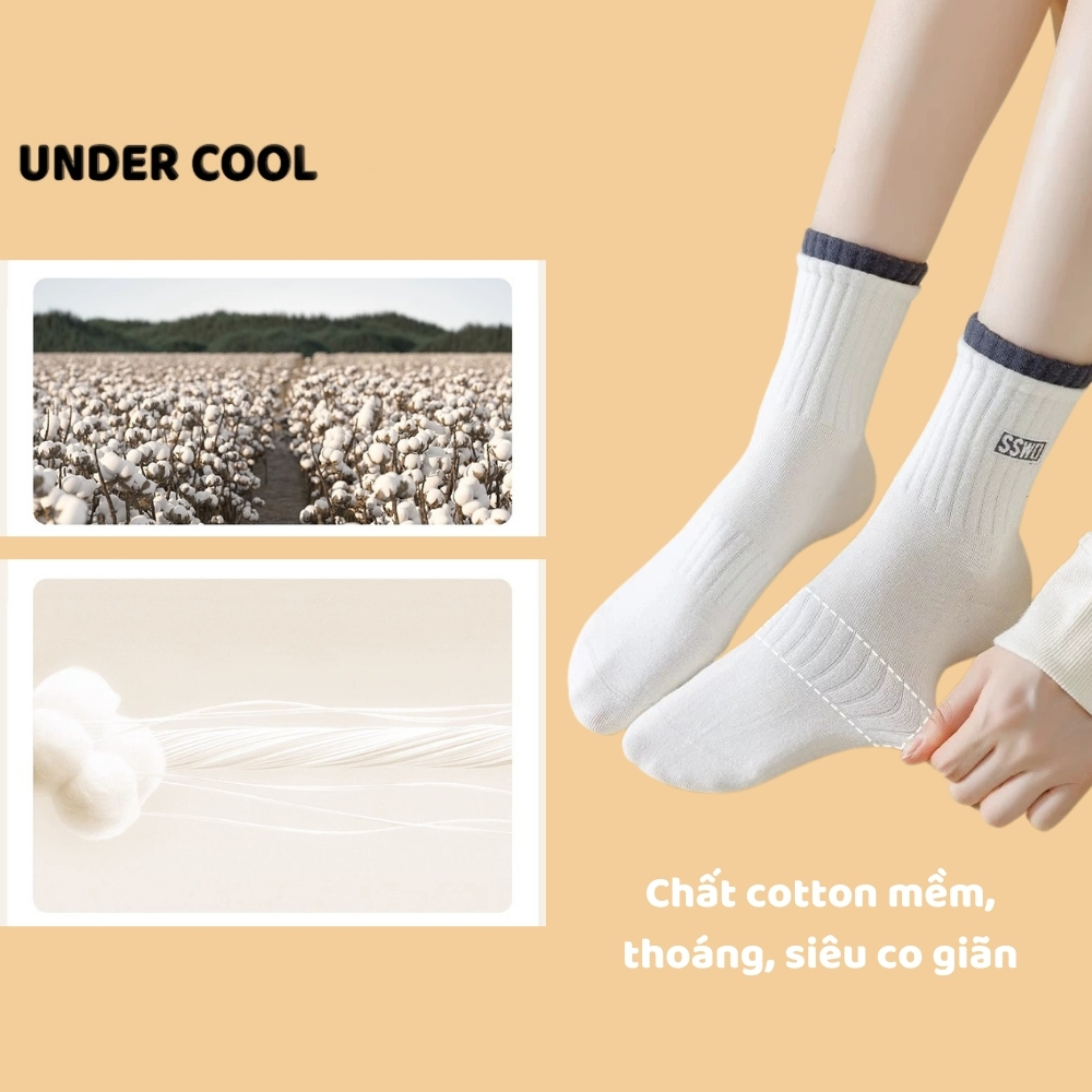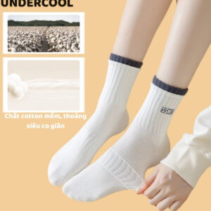 Set 5 Đôi Tất Vớ cho Nữ Cotton Cao Cổ UNDERCOOL Phối Viền Màu Họa Tiết In Chữ TC66